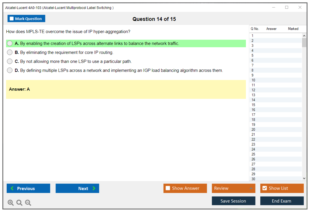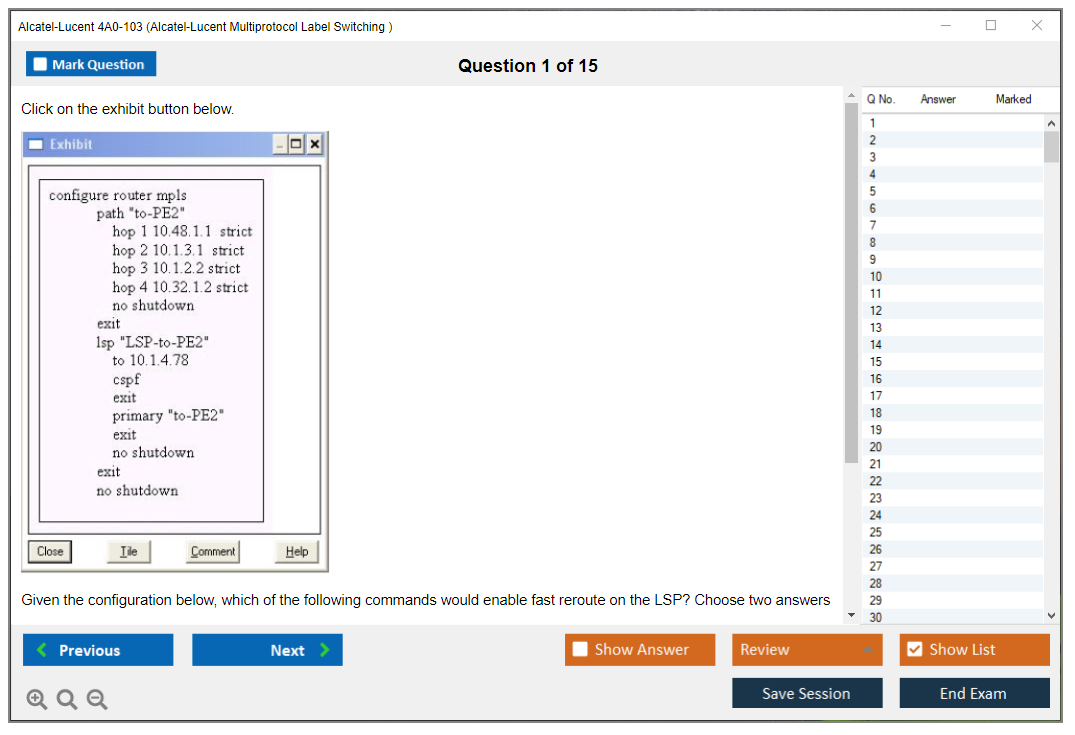 The Alcatel-Lucent 4A0-103 Exam is a certification exam that evaluates a candidate's ability to understand and apply concepts related to Multi Protocol Label Switching (MPLS) within Alcatel-Lucent networks.