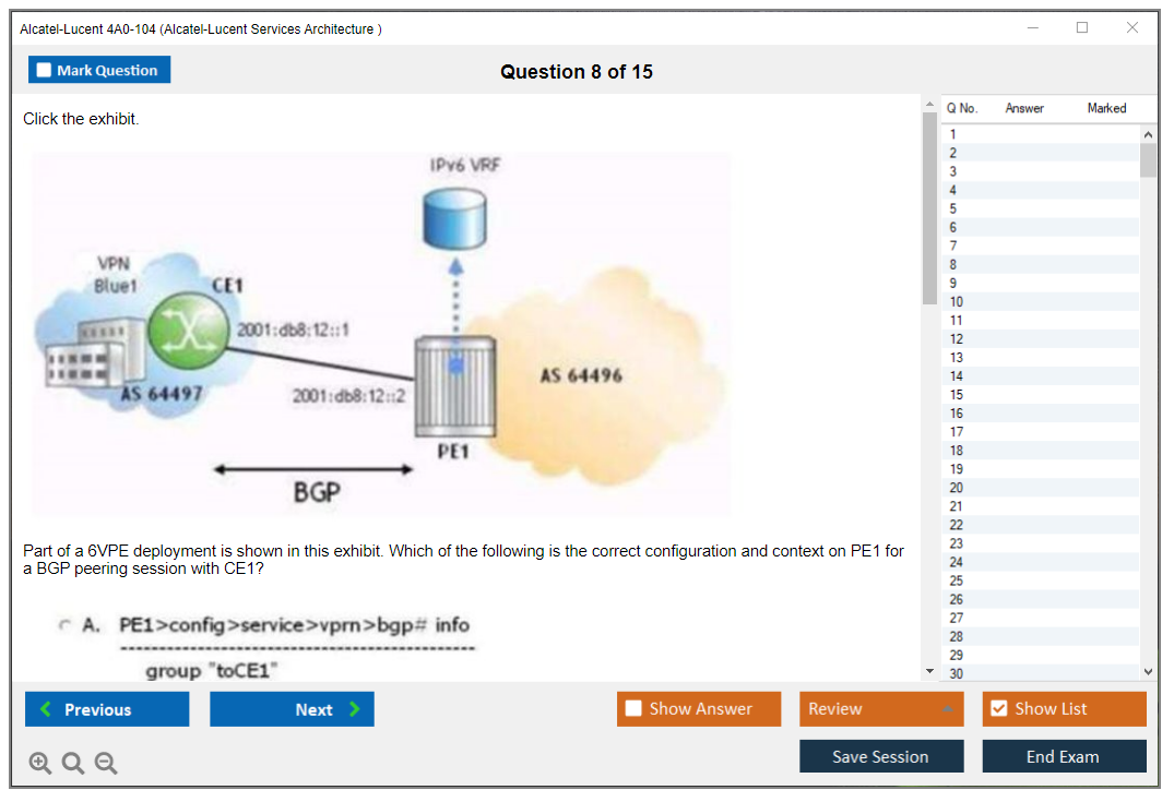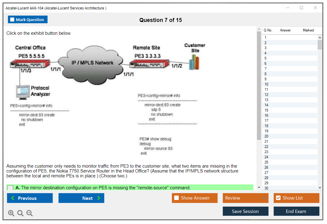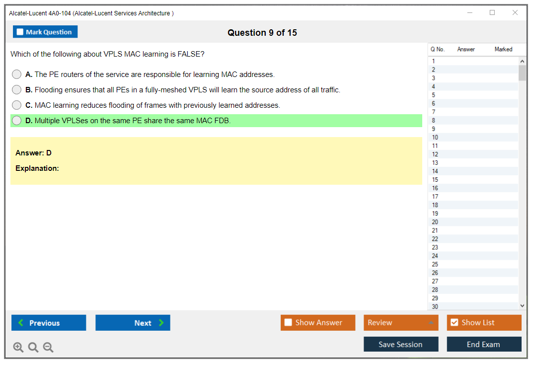 Searching for the Alcatel-Lucent 4A0-104 exam dumps? We offer you a lot of different solutions when it comes to memorizing the best way to answer them. Search through our dump now!