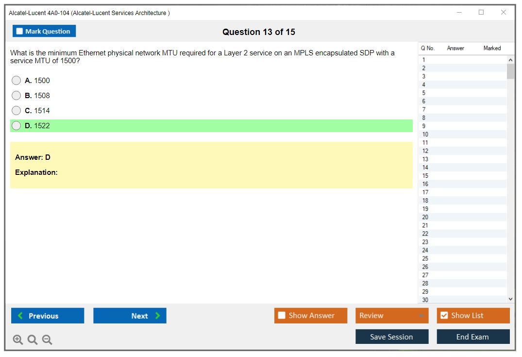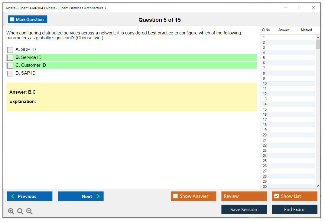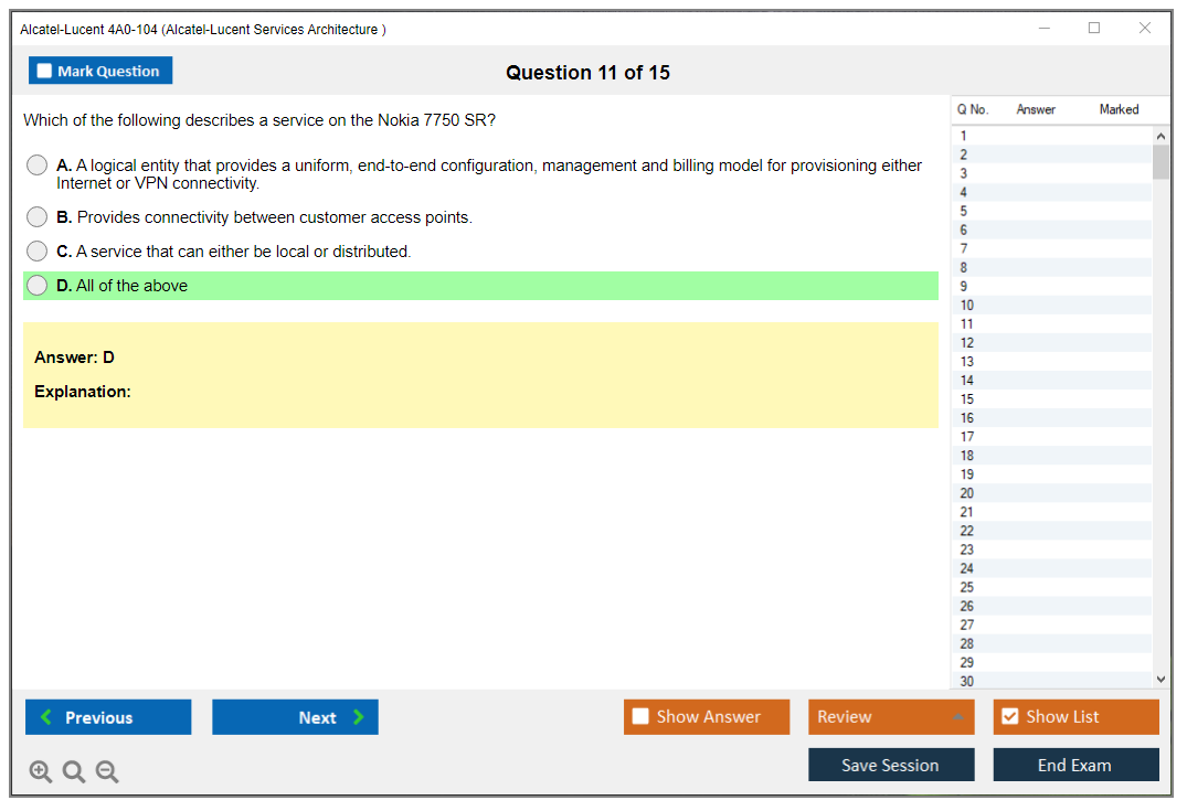 The Alcatel-Lucent 4A0-104 (Alcatel-Lucent Services Architecture) Exam is designed to test the knowledge and skills of candidates in various aspects of service architecture within Alcatel-Lucent's network solutions.
