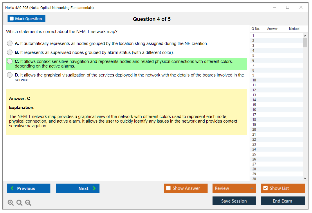 The Nokia 4A0-205 (Nokia Optical Networking Fundamentals) Exam is designed to test the knowledge and skills related to optical networking principles, technologies, and Nokia's specific optical networking products and solutions.