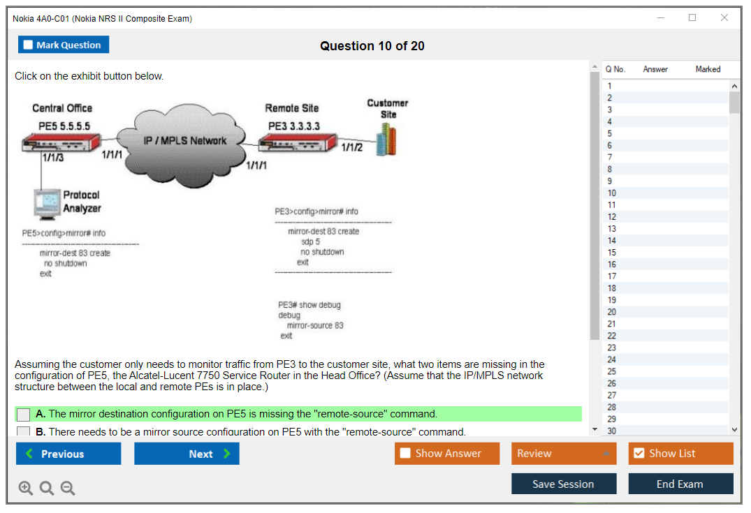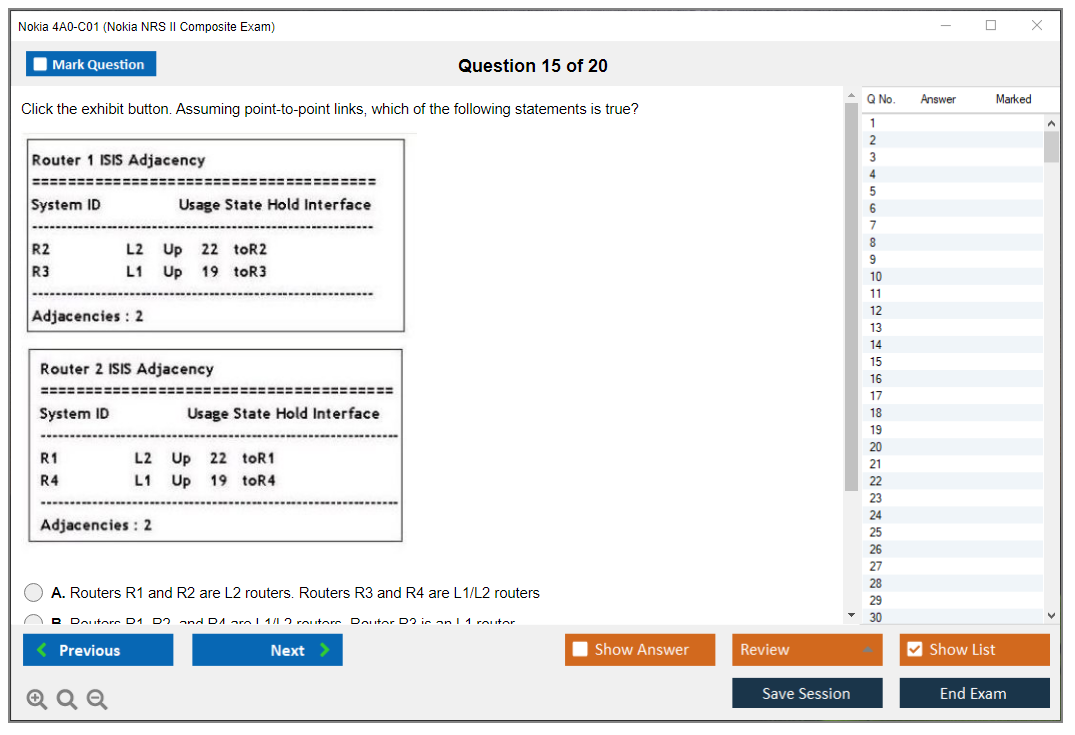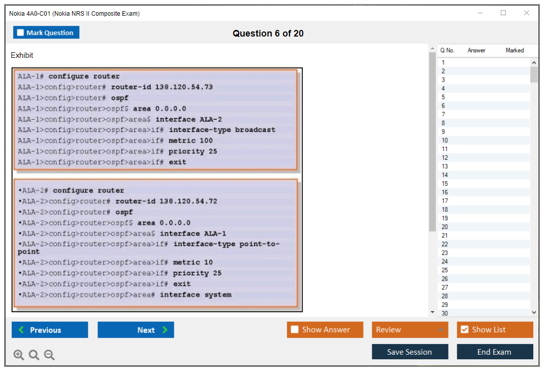 What are the Sample Questions of Nokia 4A0-C01 Exam?
