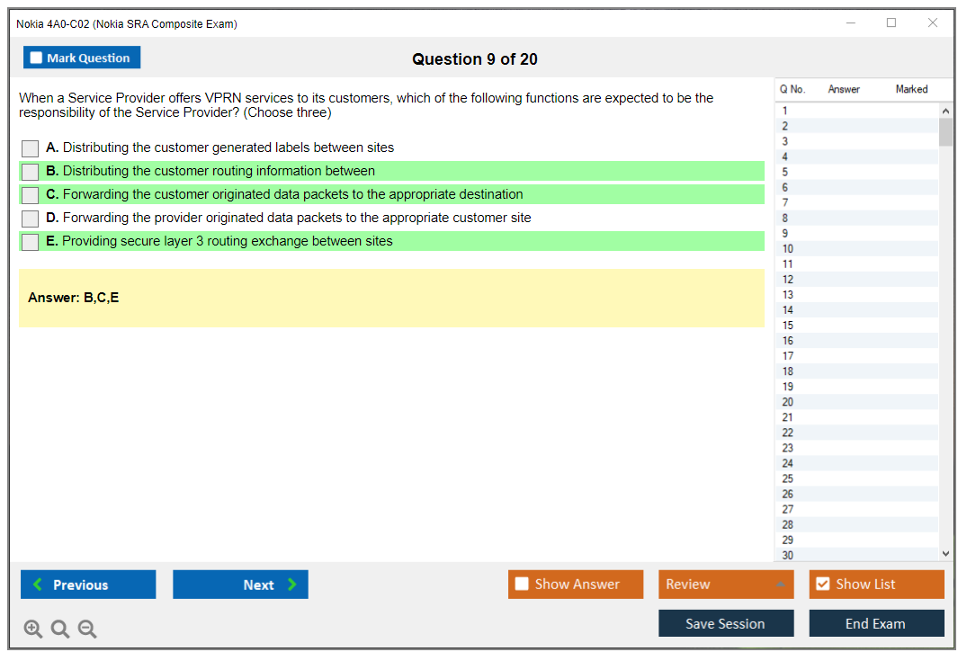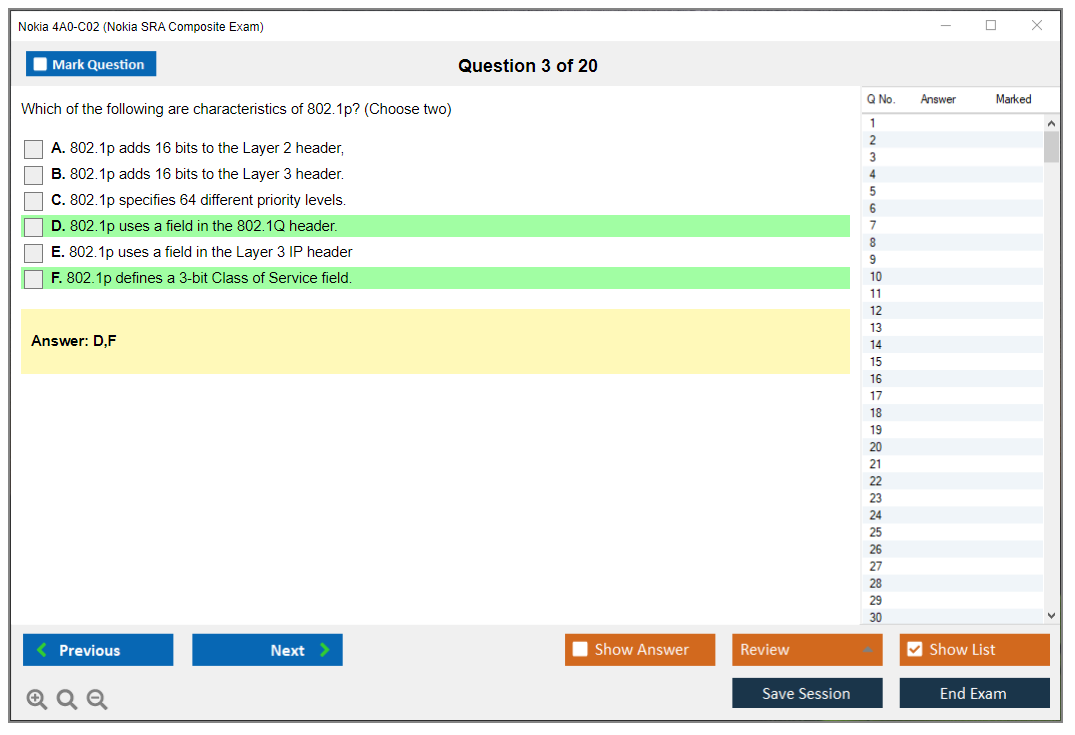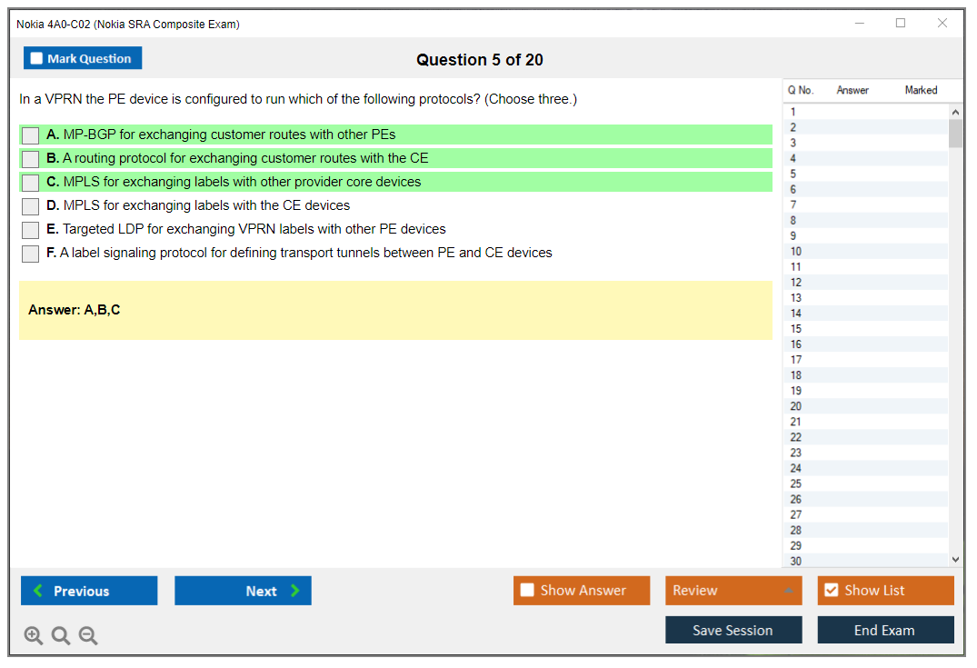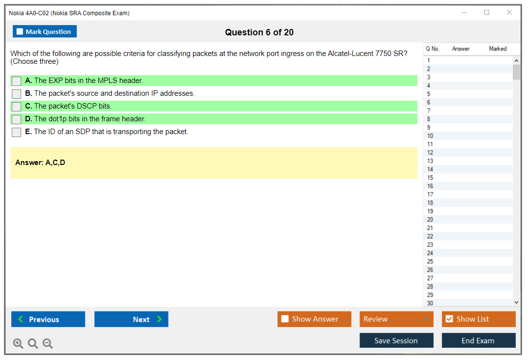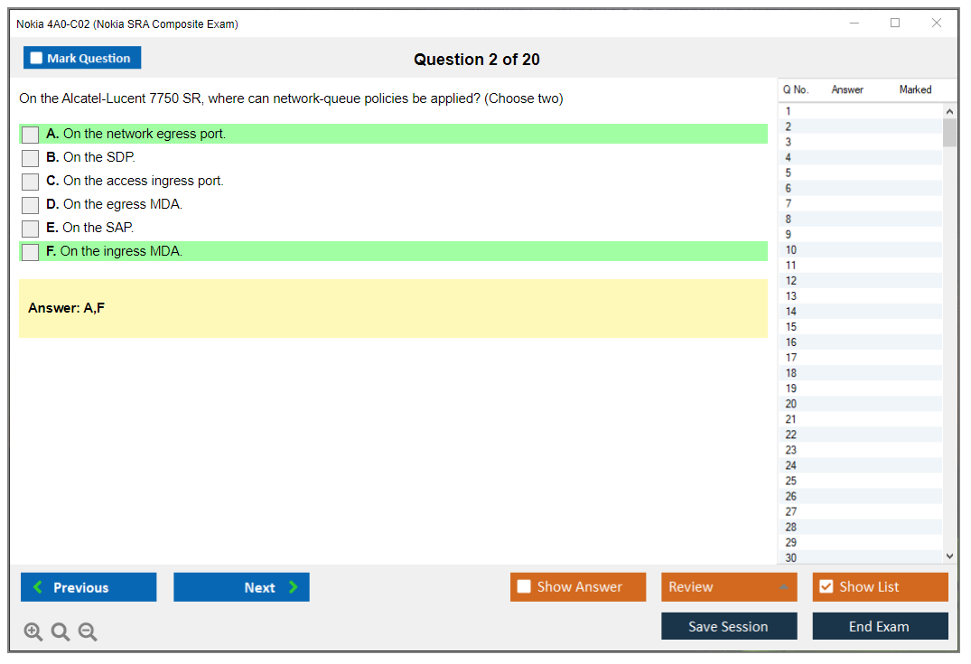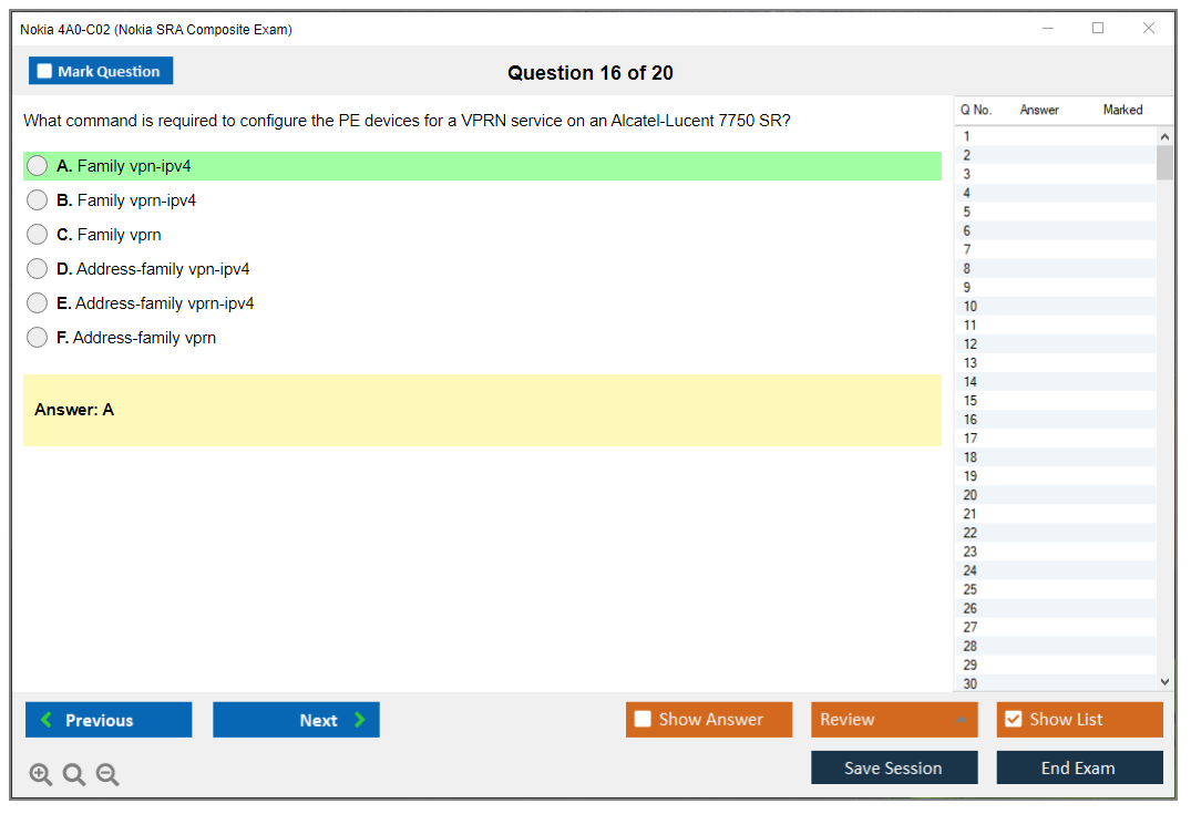 The question format of the Nokia 4A0-C02 Exam includes multiple-choice questions, drag-and-drop, and scenario-based questions.