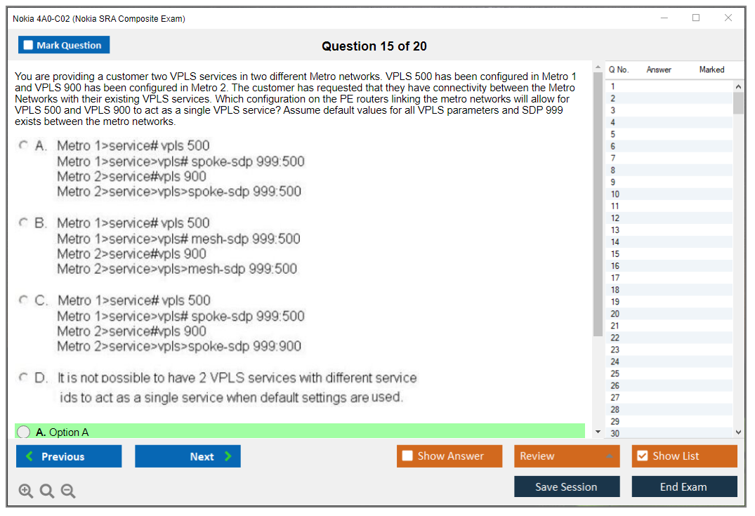 What are the Sample Questions of Nokia 4A0-C02 Exam?
