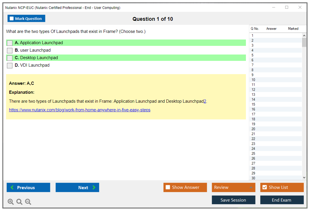 The Nutanix NCP-EUC Exam consists of multiple-choice and multiple-select questions.