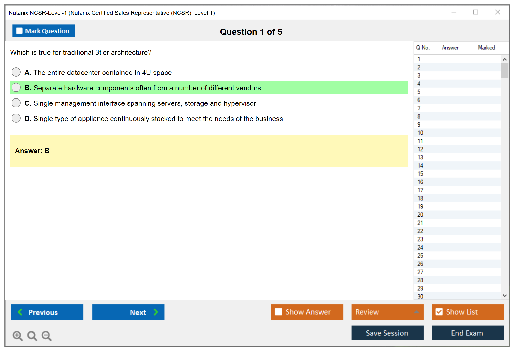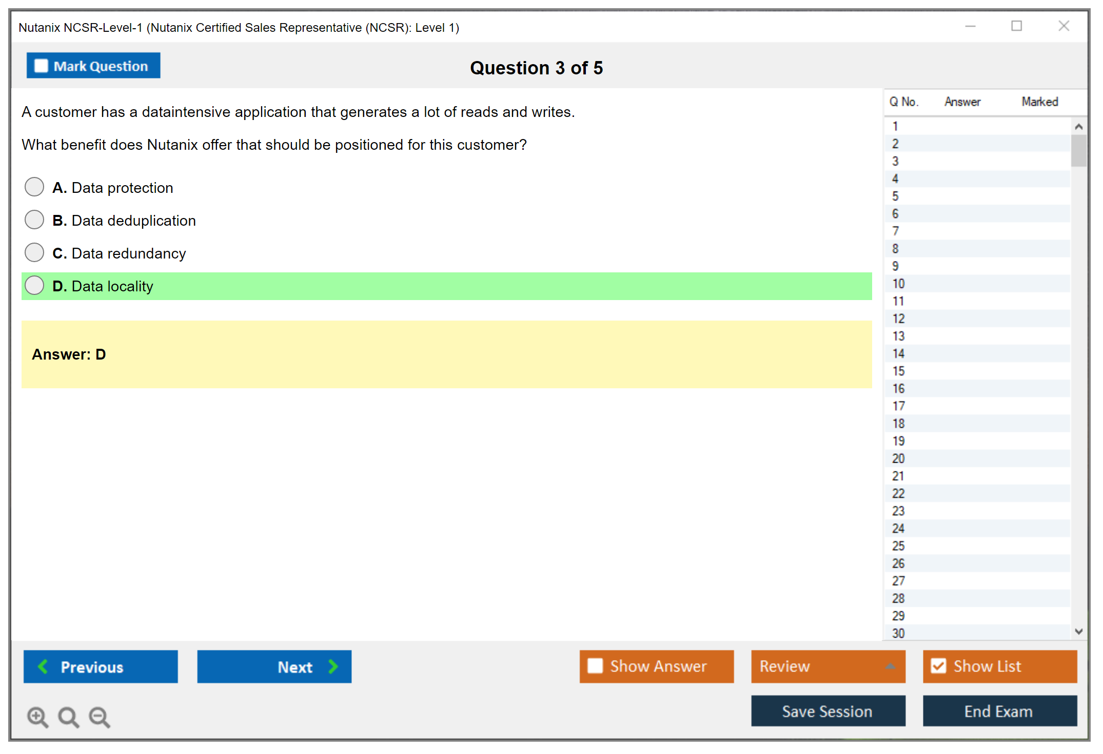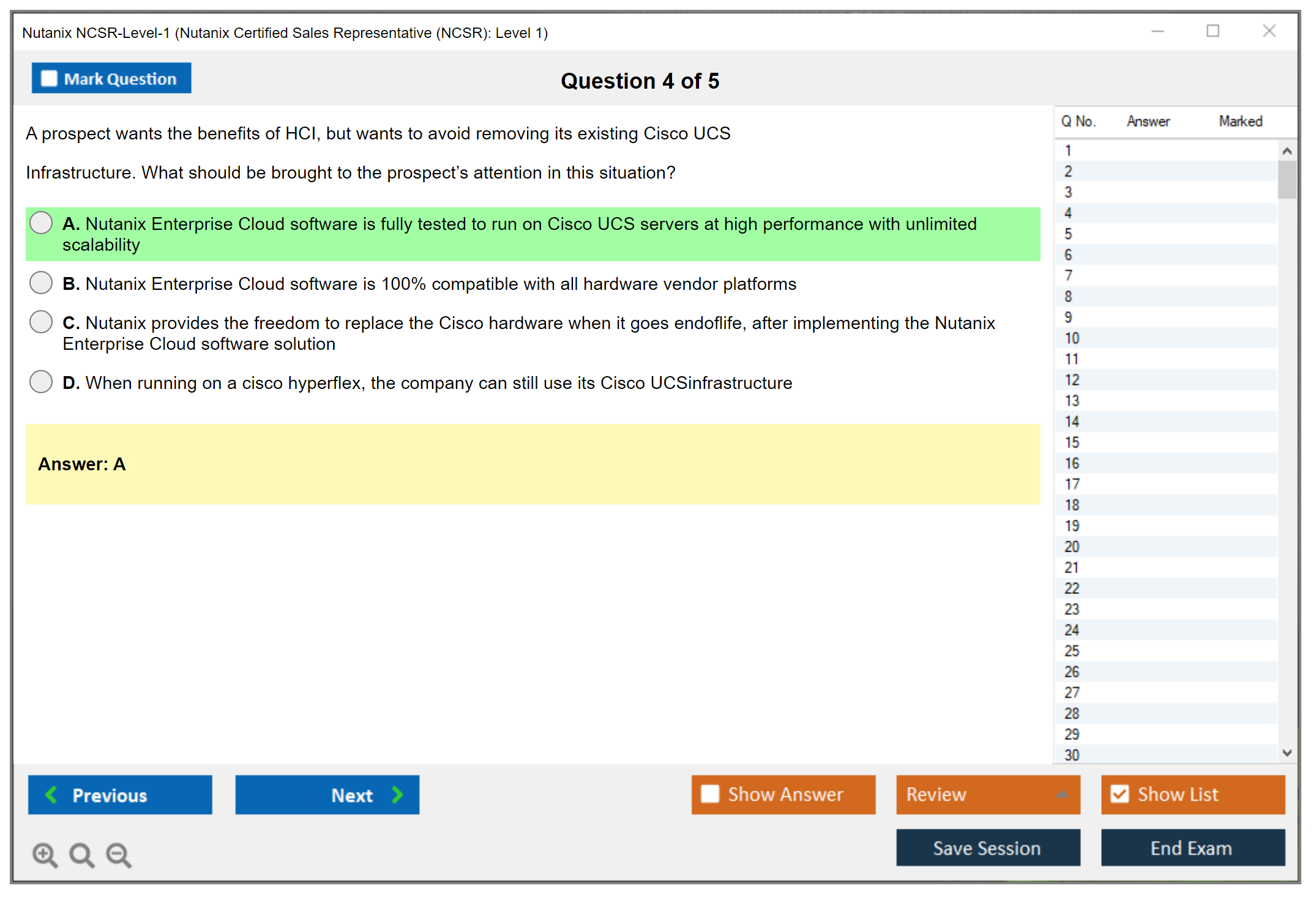 The Nutanix Certified Sales Representative (NCSR): Level 1 exam is designed to validate the foundational knowledge and skills of sales professionals regarding Nutanix products and solutions. It focuses on assessing the ability to effectively communicate the value proposition of Nutanix solutions to potential customers.
