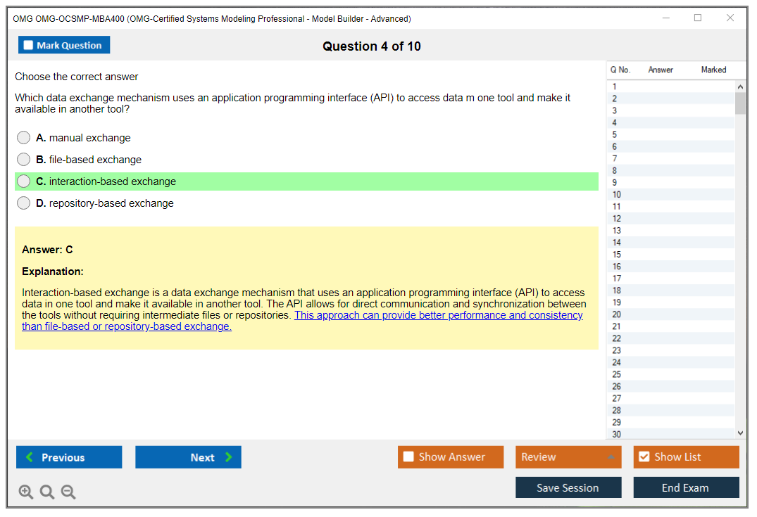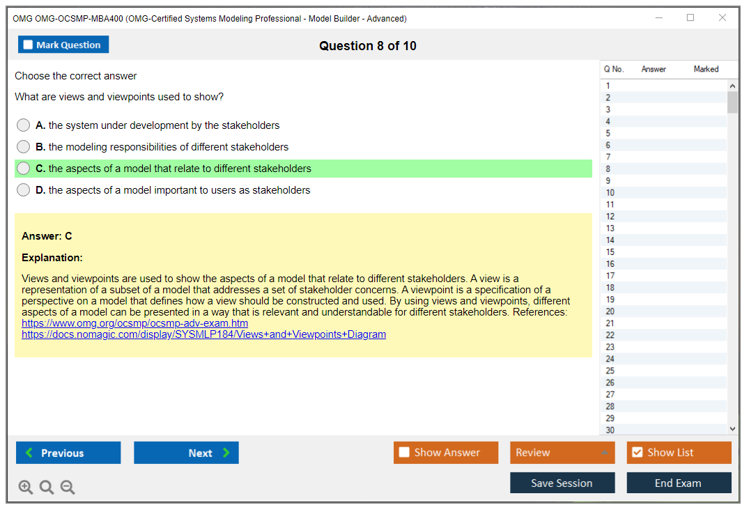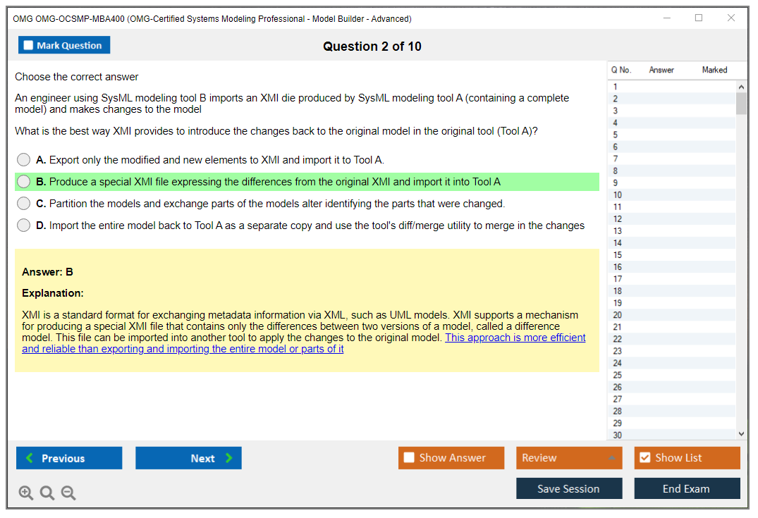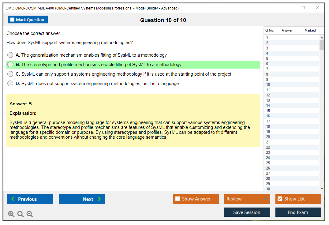 The OMG OMG-OCSMP-MBA400 (OMG-Certified Systems Modeling Professional - Model Builder – Advanced) exam is designed to test the advanced skills and knowledge required to build and manage complex systems models using OMG standards and methodologies.
