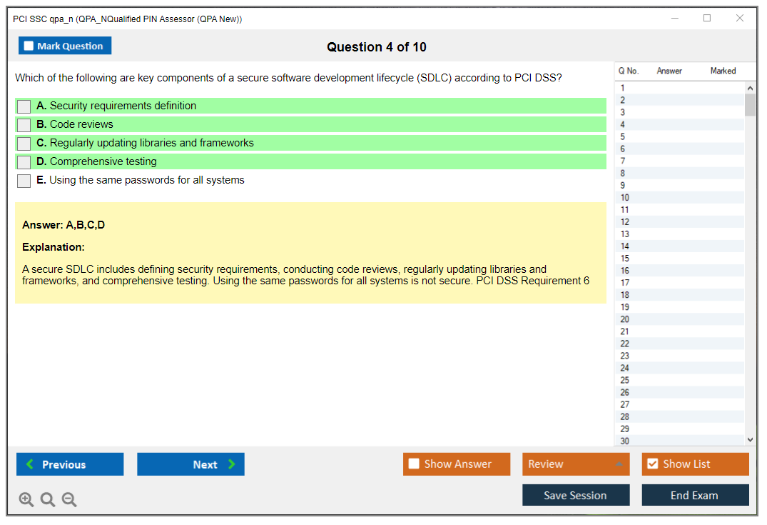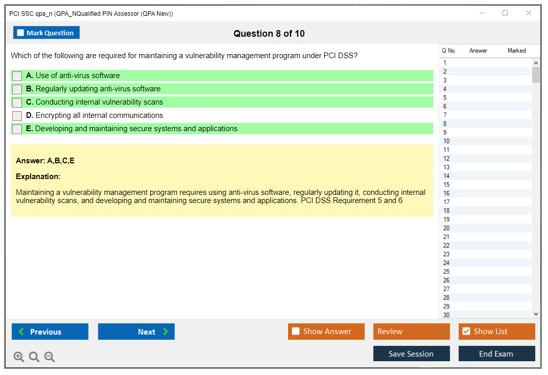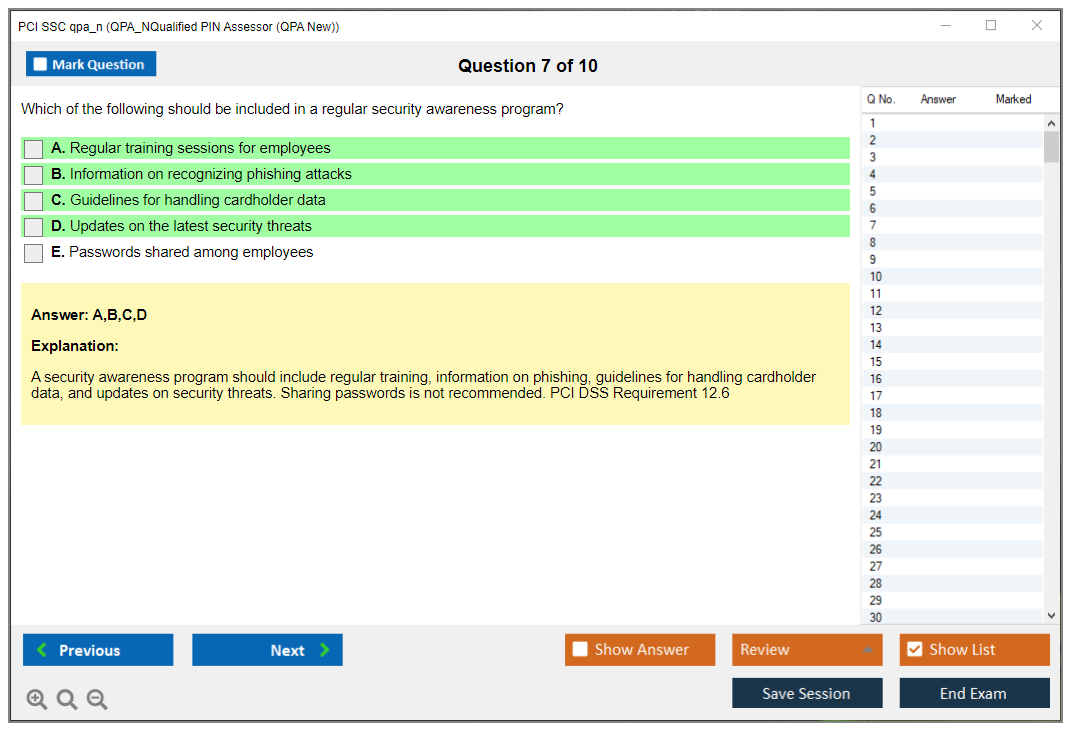 Sample questions for the PCI SSC QPA_N exam may be provided by the PCI Security Standards Council through their official resources or training programs. Candidates should refer to these materials for practice and preparation.