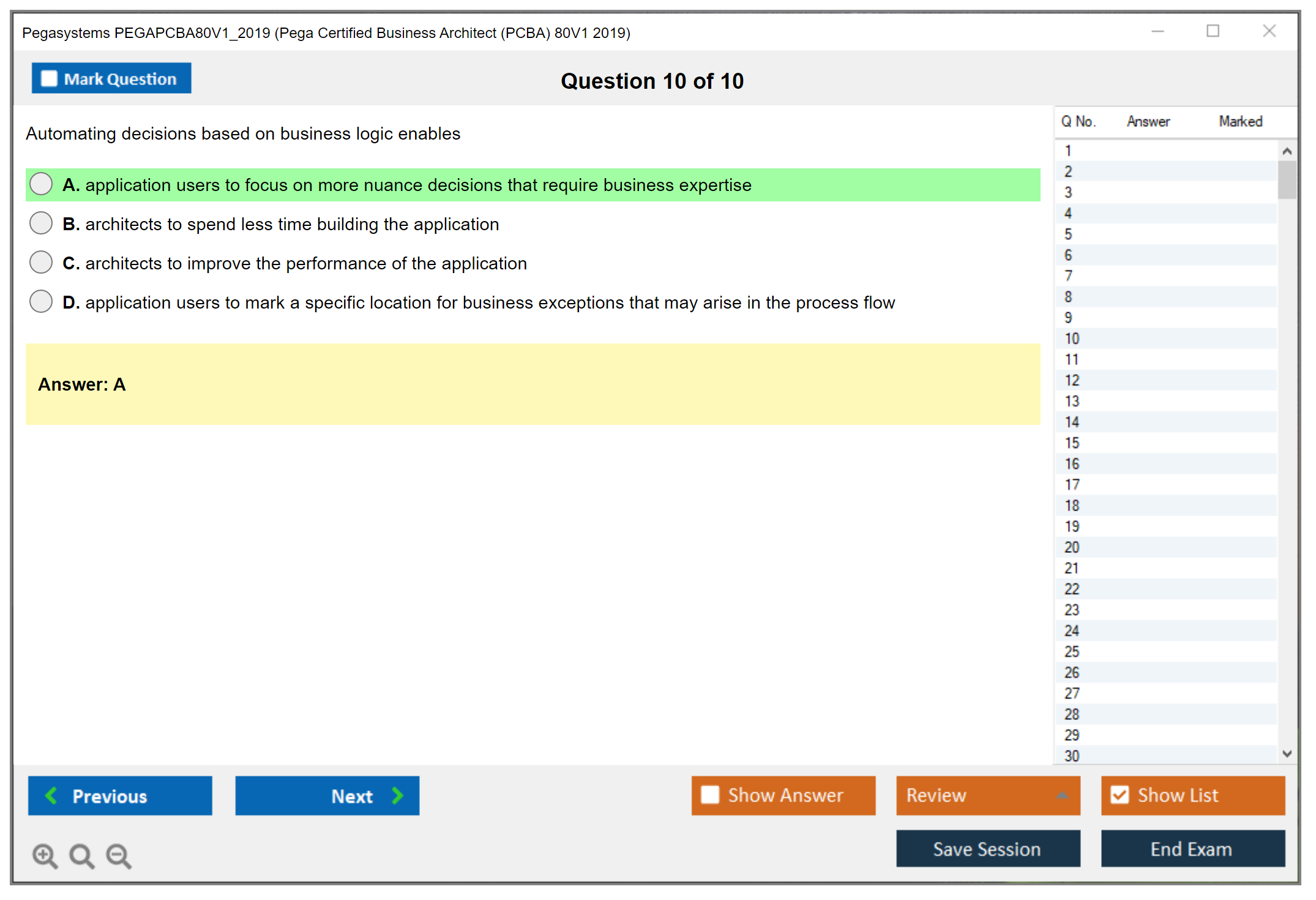 Note: Pegasystems PEGAPCBA80V1_2019 (Pega Certified Business Architect (PCBA) 80V1 2019) will not receive any new updates.