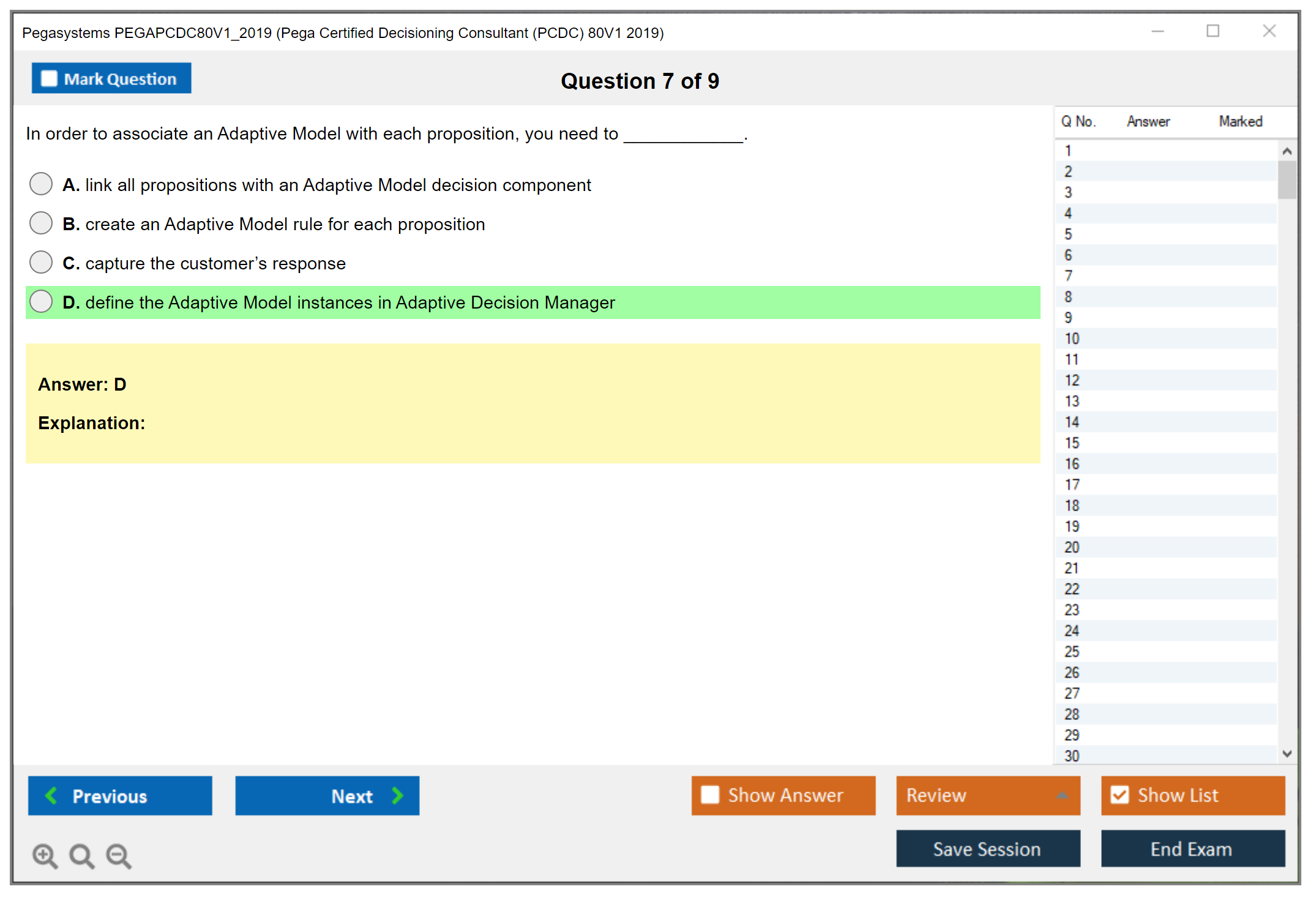 Note: Pegasystems PEGAPCDC80V1_2019 (Pega Certified Decisioning Consultant (PCDC) 80V1 2019) will not receive any new updates.