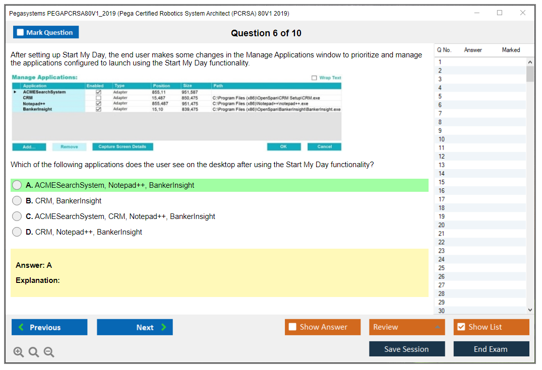 The Pegasystems PEGAPCRSA80V1_2019 (Pega Certified Robotics System Architect (PCRSA) 80V1 2019) Exam is a certification test designed to validate the skills and knowledge of professionals in Pega robotic automation. It focuses on the ability to design and implement Pega robotic solutions.