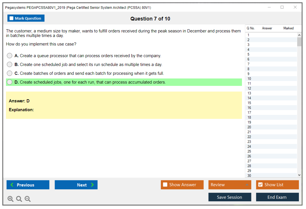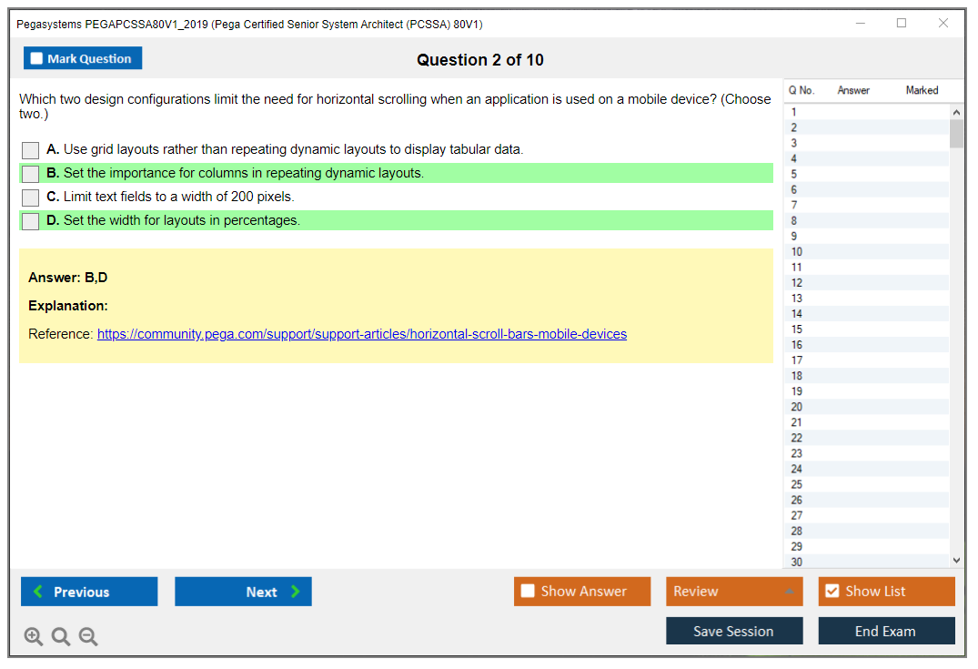 The Pegasystems PEGAPCSSA80V1_2019 (Pega Certified Senior System Architect (PCSSA) 80V1) Exam is a certification exam designed for individuals who wish to demonstrate their advanced knowledge and skills in designing and building Pega applications.