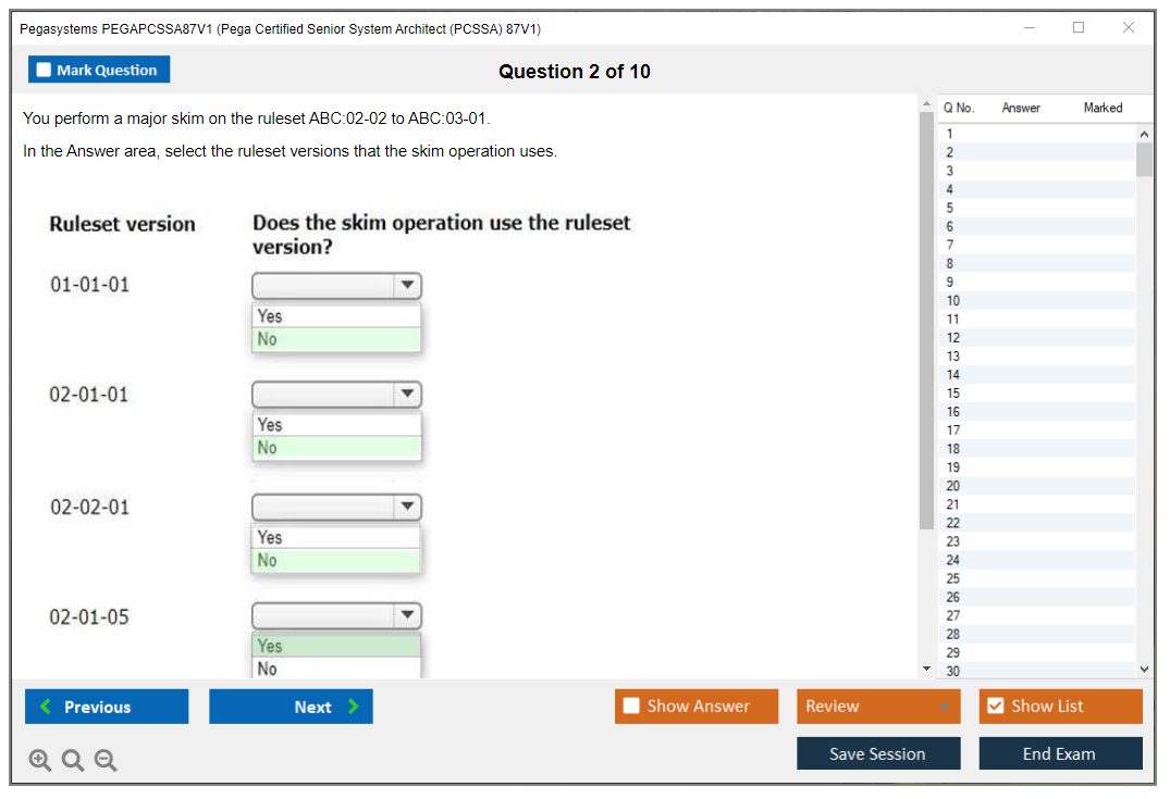 The Pegasystems PEGAPCSSA87V1 exam is intended for individuals who have experience in developing Pega applications and are looking to validate their advanced skills. It covers a variety of topics related to Pega's platform and its application in real-world scenarios.