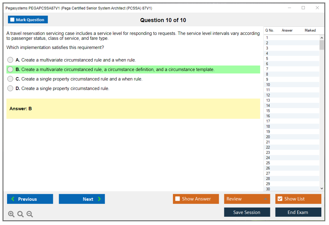 The Pegasystems PEGAPCSSA87V1 (Pega Certified Senior System Architect (PCSSA) 87V1) exam is designed to validate the skills and knowledge of experienced Pega professionals. It focuses on the ability to design and build for reusability across multiple lines of business and to manage the development of Pega applications.