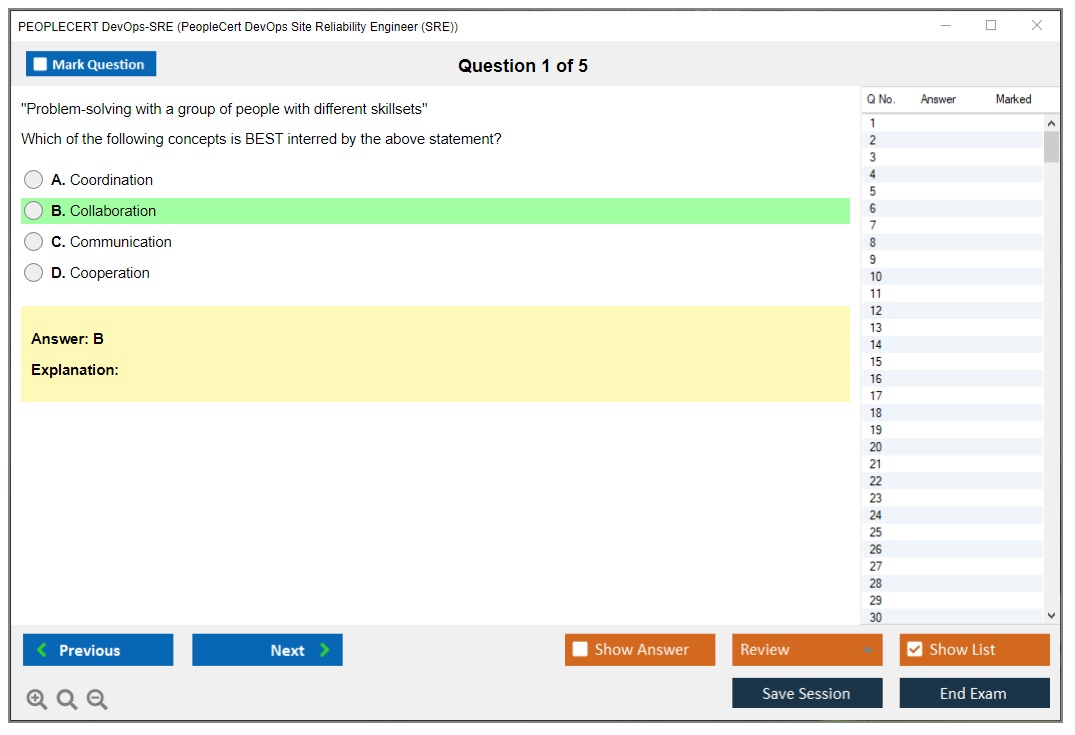 What is the Question Format of PEOPLECERT DevOps-SRE Exam?