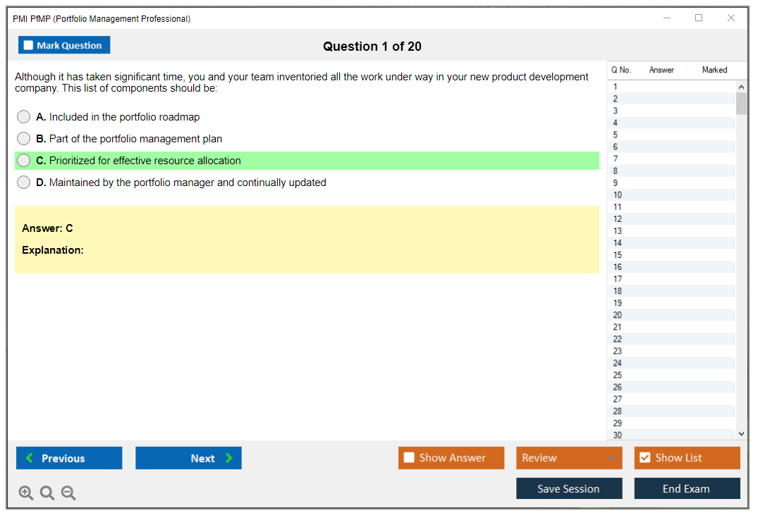 The PMI Portfolio Management Professional (PfMP) exam is a globally recognized certification that validates an individual's advanced competency in the coordinated management of one or more portfolios to achieve organizational objectives. The certification is designed for experienced portfolio managers who are responsible for the success of one or more portfolios within an organization.