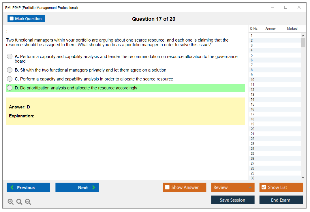 What are the Sample Questions of PMI PfMP Exam?