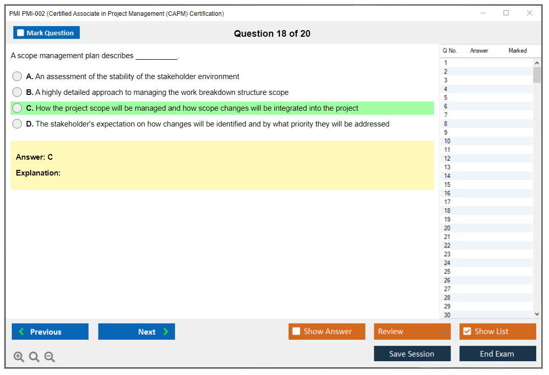 The PMI PMI-002 (Certified Associate in Project Management, CAPM) Certification Exam is designed for individuals who want to demonstrate their understanding of fundamental project management knowledge, terminology, and processes. It is an entry-level certification offered by the Project Management Institute (PMI).