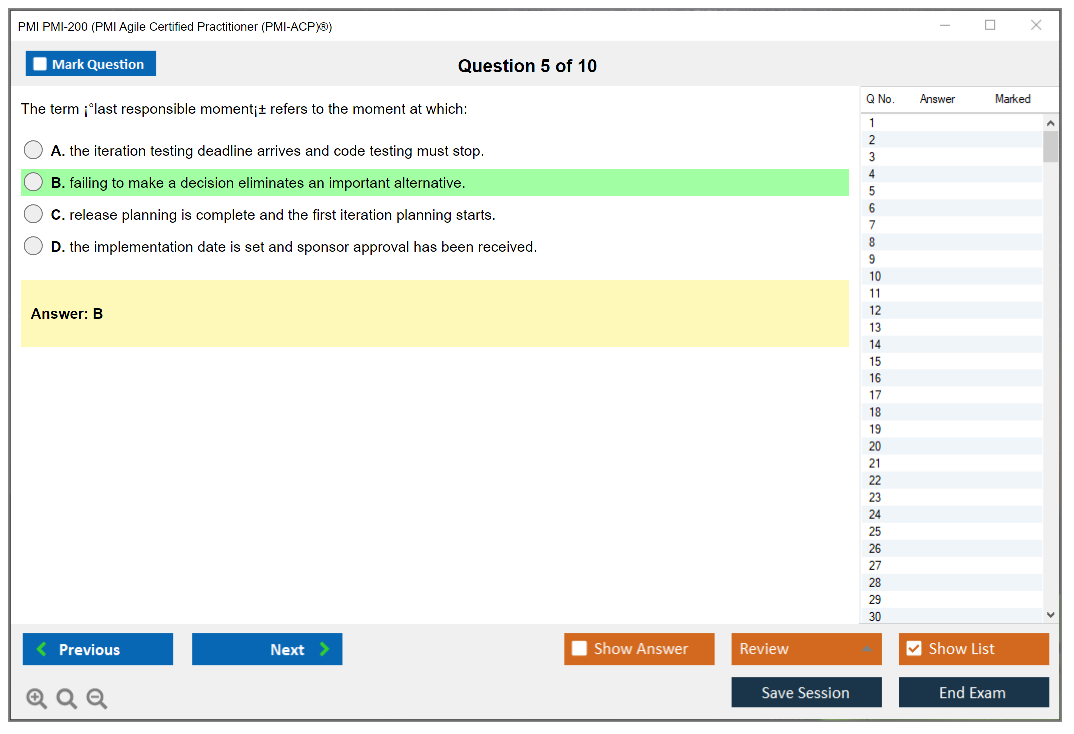 You can take the PMI-ACP exam online through a proctored environment or at a Pearson VUE testing center.