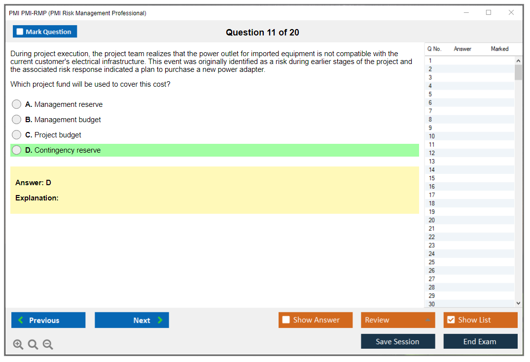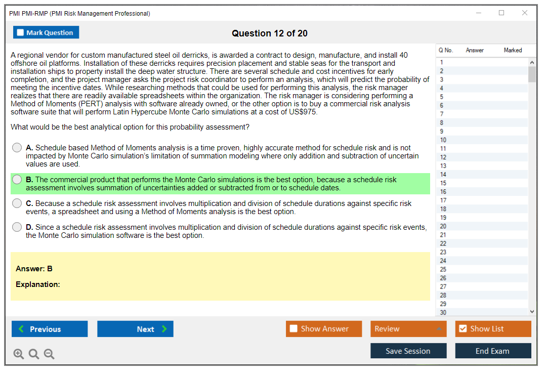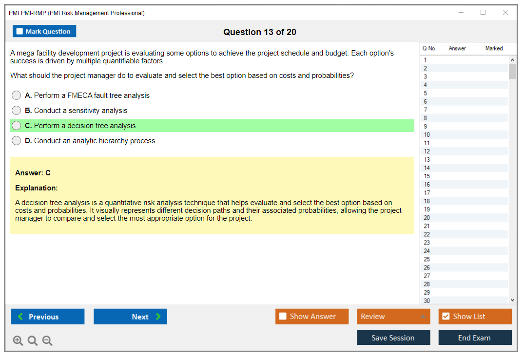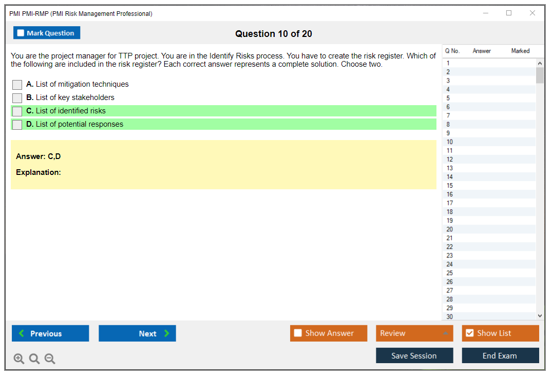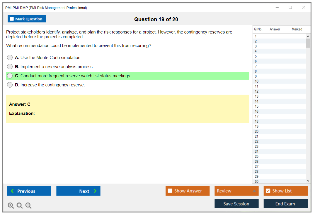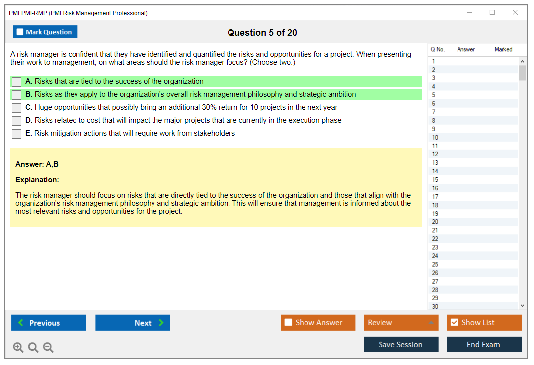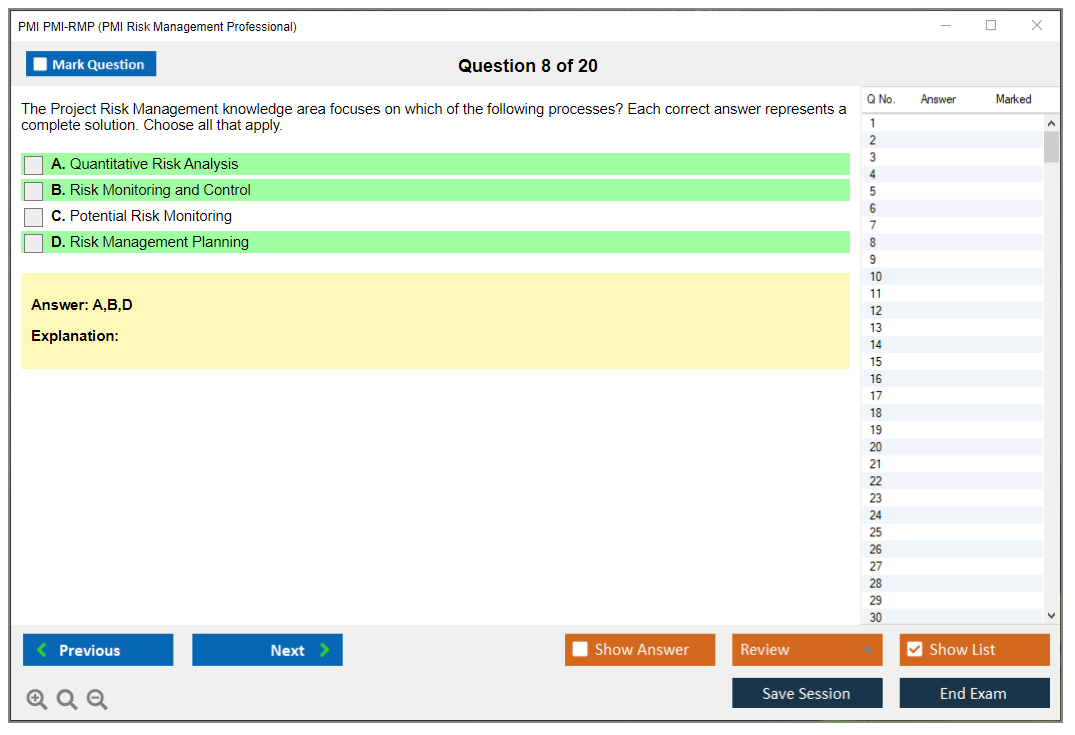 What are the Sample Questions of PMI PMI-RMP Exam?