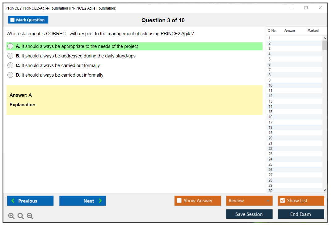 What is the Question Format of PRINCE2 PRINCE2-Agile-Foundation Exam?