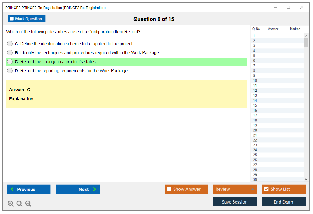 The PRINCE2 Re-Registration Exam is an assessment for individuals who need to renew their PRINCE2 Practitioner certification. This exam confirms that the candidates still possess the knowledge and understanding of the PRINCE2 methodology.