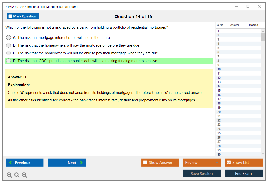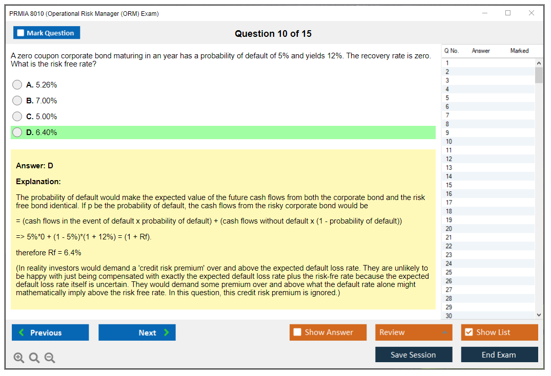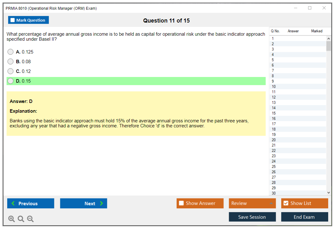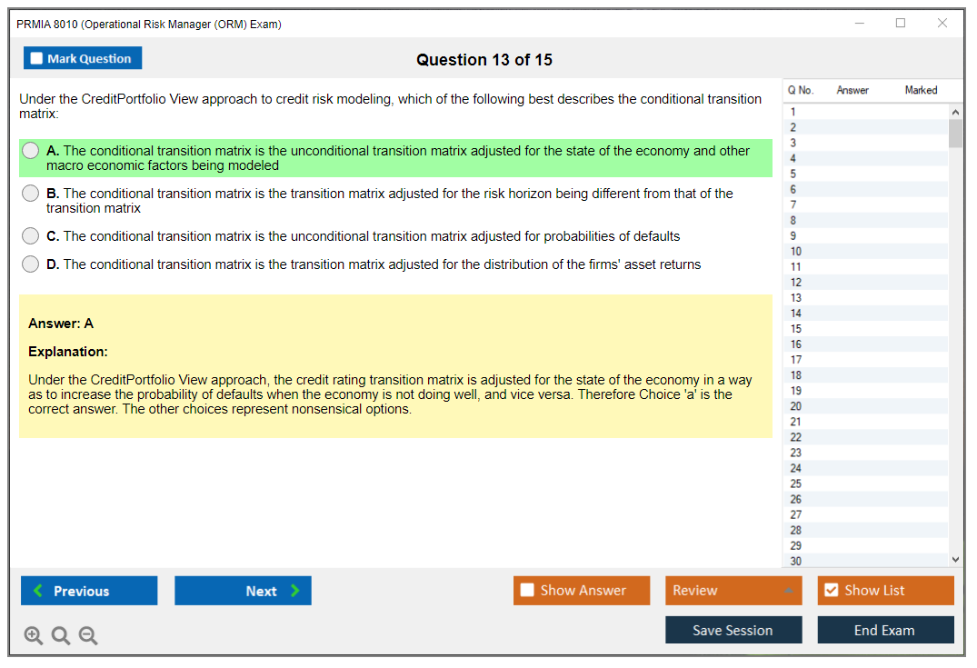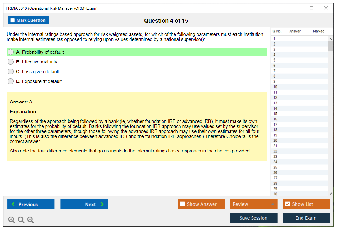 The PRMIA 8010 Operational Risk Manager (ORM) Exam is a professional certification designed to validate the knowledge and skills of individuals in the field of operational risk management. It covers various aspects of risk management including risk identification, assessment, monitoring, and mitigation.