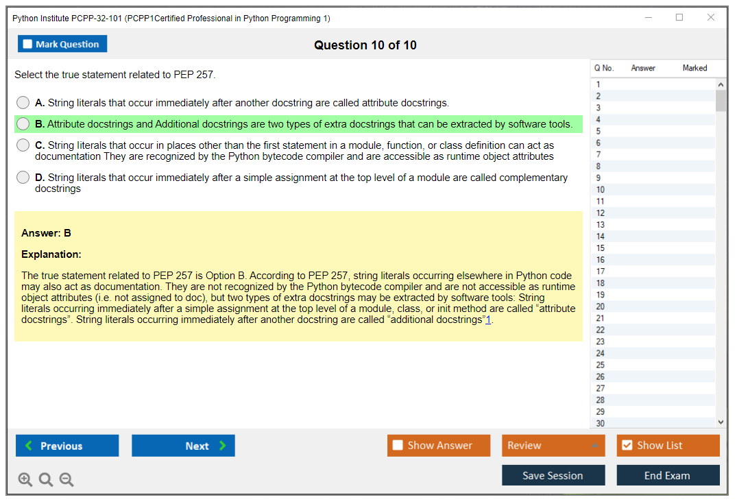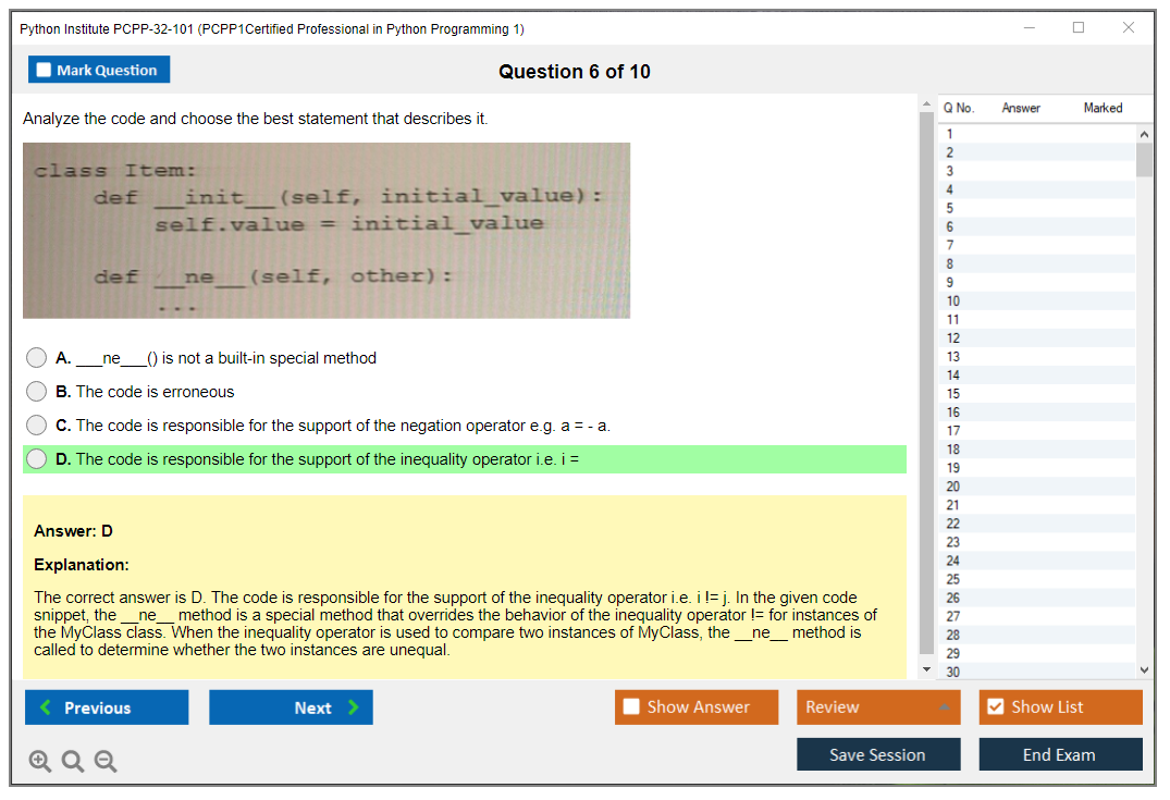The Python Institute PCPP-32-101 exam is a certification test that assesses a candidate's ability to perform advanced programming tasks using Python. It covers various topics, including object-oriented programming, GUI programming, best practices, and more.