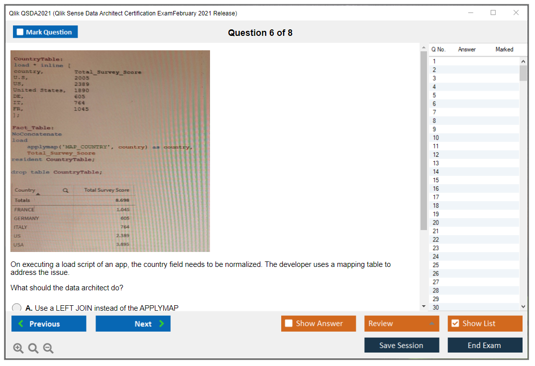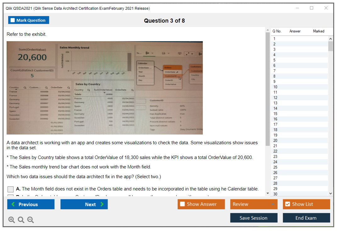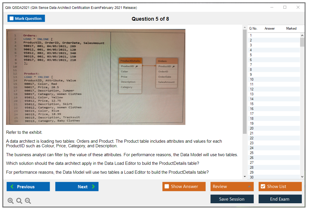 What are the Sample Questions of Qlik QSDA2021 Exam?