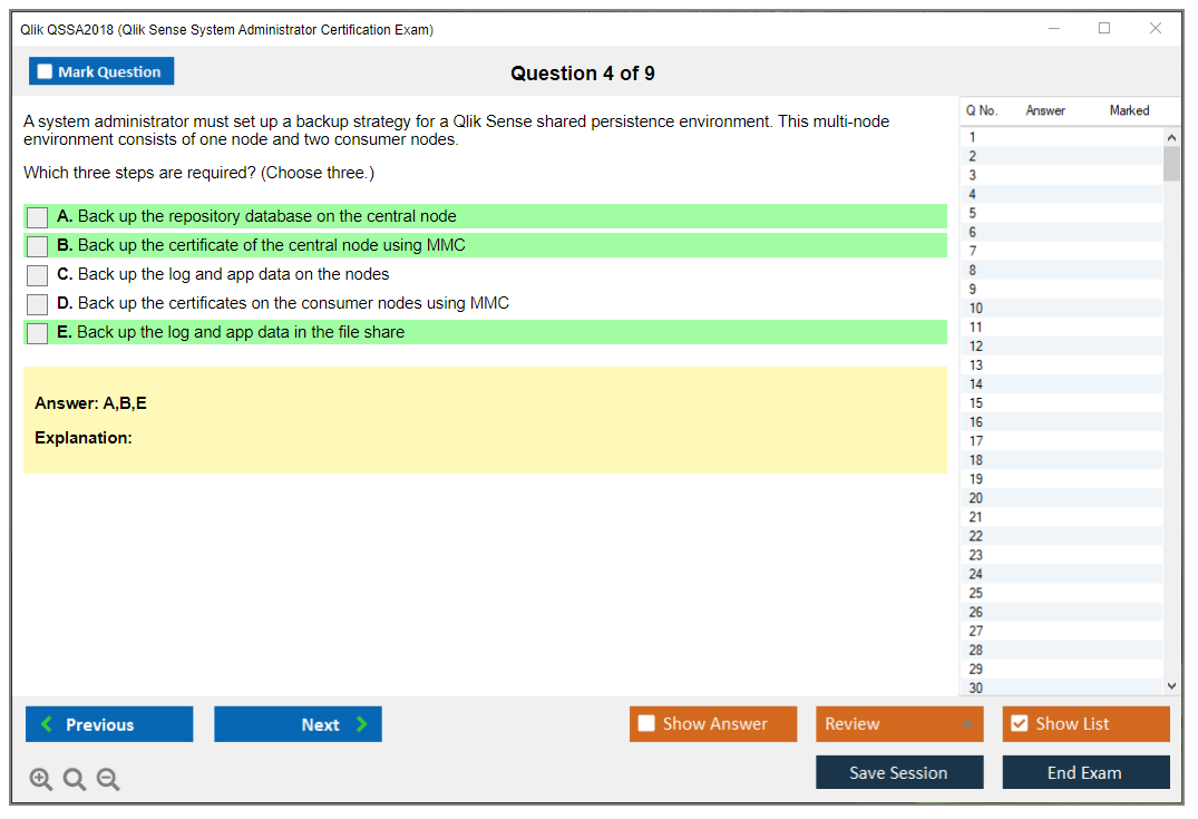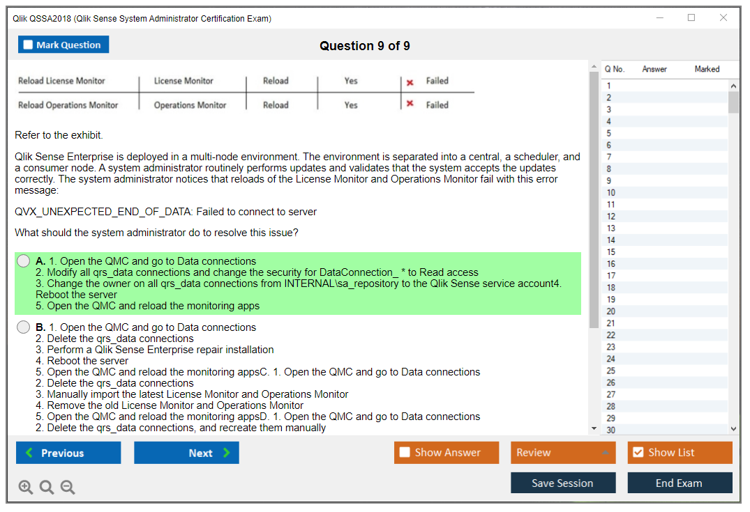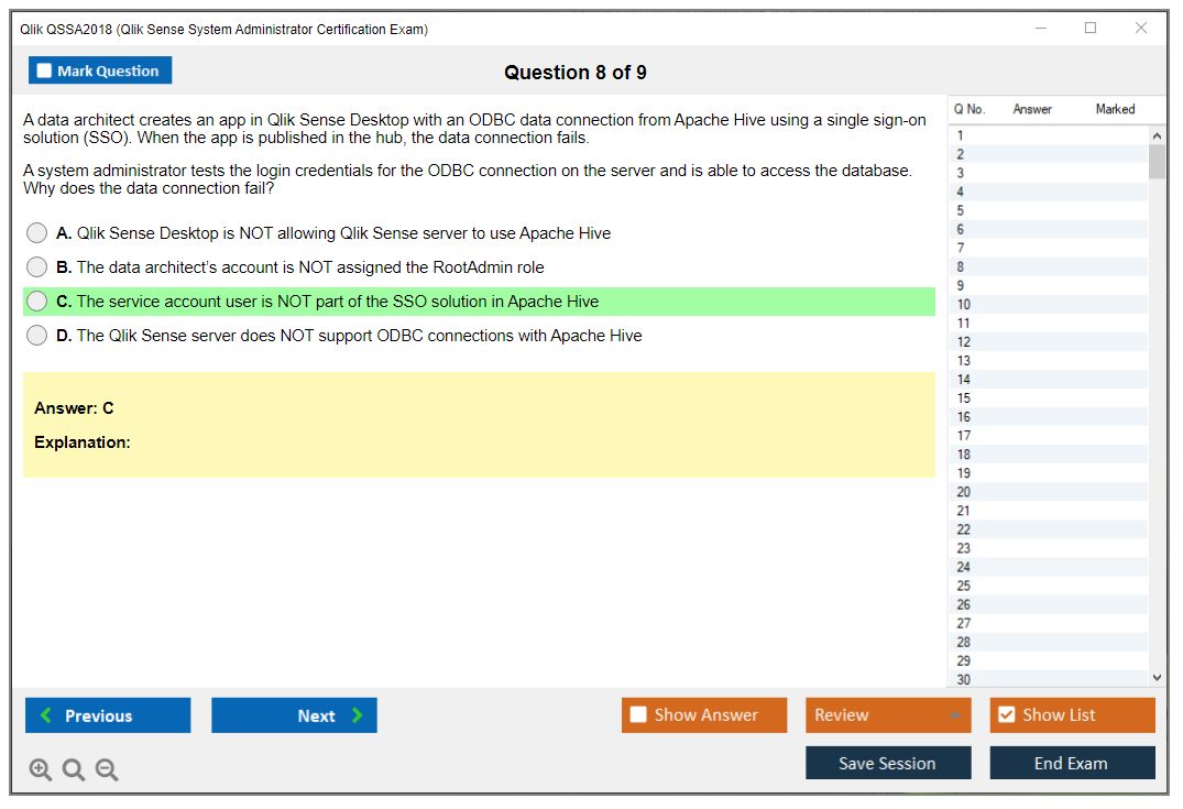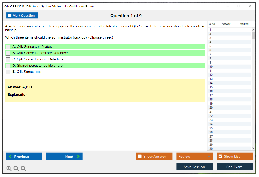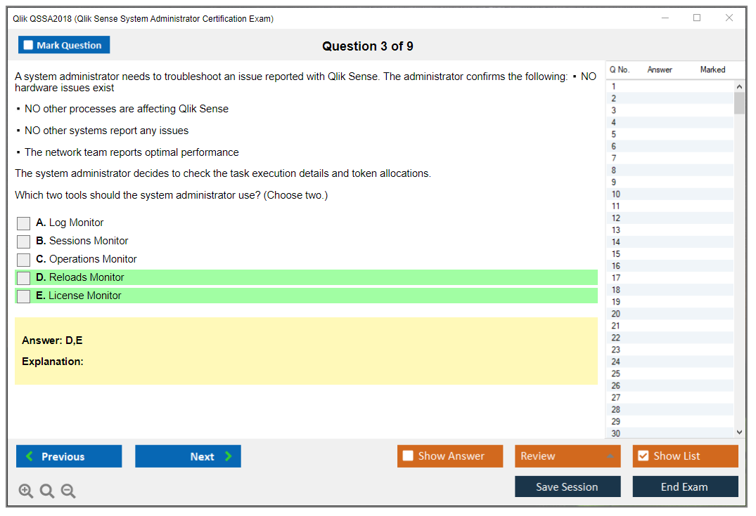 The Qlik QSSA2018 Exam is a certification exam for system administrators to demonstrate their expertise in managing Qlik Sense environments. It covers a variety of topics including installation, configuration, security, and troubleshooting.