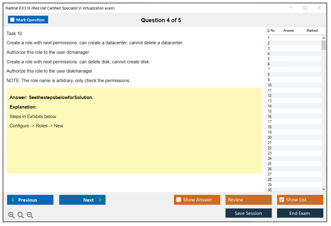 The Red Hat Certified Specialist in Virtualization exam (EX318) is a performance-based test that assesses your ability to create, configure, and manage virtual machines using Red Hat Virtualization. It validates your skills in deploying and managing virtualization infrastructure using Red Hat technologies.