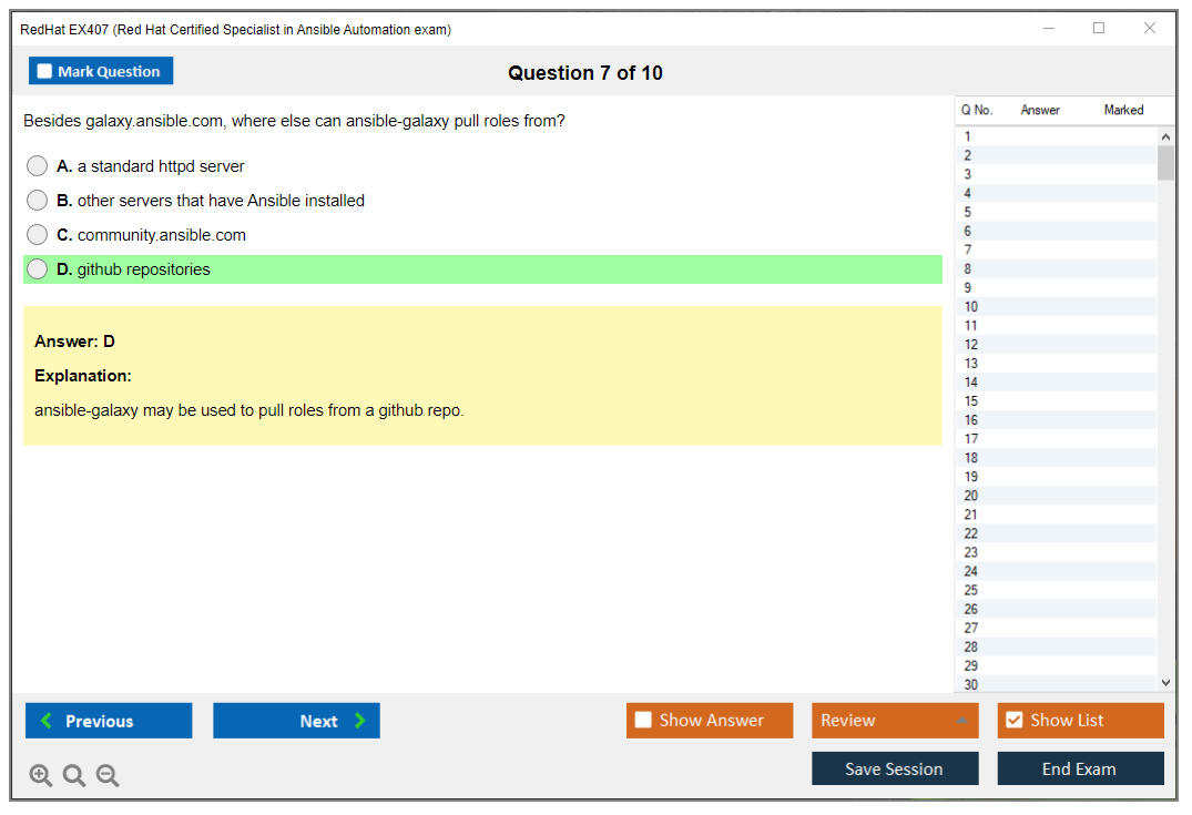 Sample questions for the RedHat EX407 exam can be found on the official Red Hat website and in the Red Hat training courses related to Ansible.