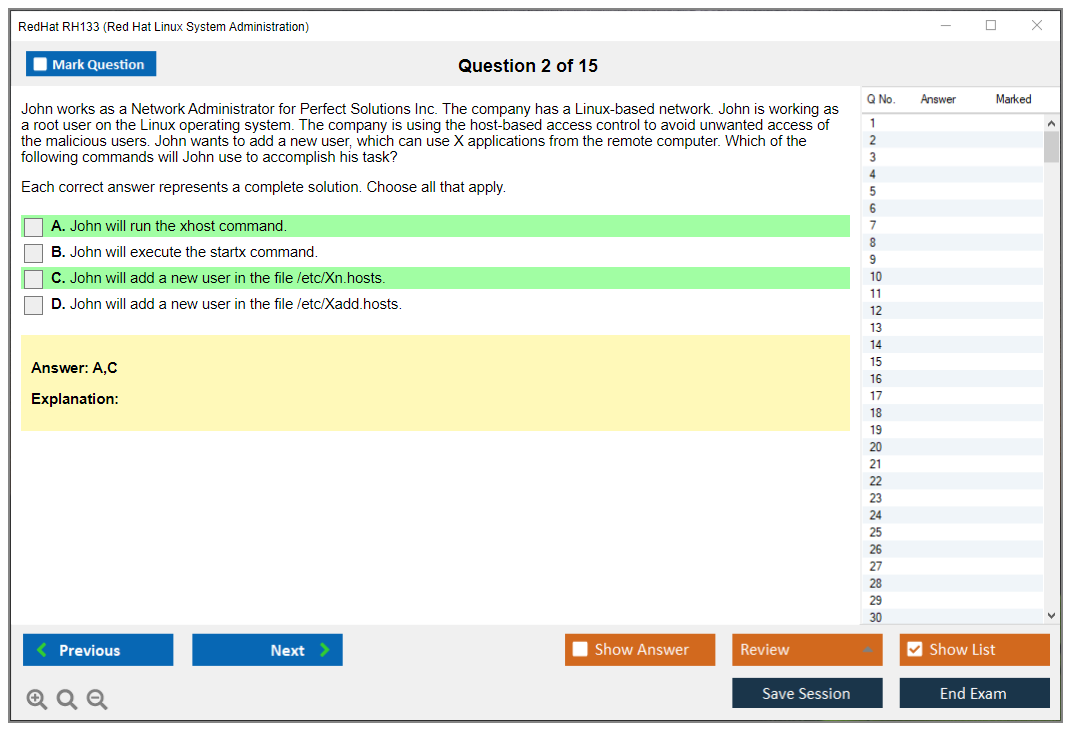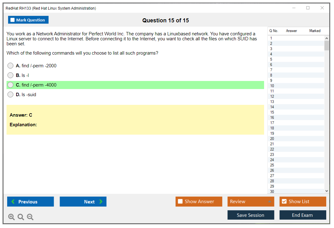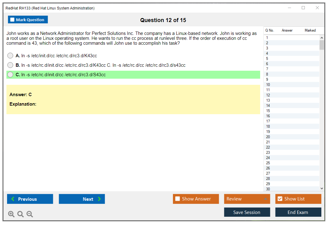 The RedHat RH133 (Red Hat Linux System Administration) Exam is designed for system administrators who want to demonstrate their skills in managing and administering Red Hat Enterprise Linux environments. The exam tests the candidate's ability to perform essential tasks in Red Hat Enterprise Linux, including installation, configuration, and troubleshooting.