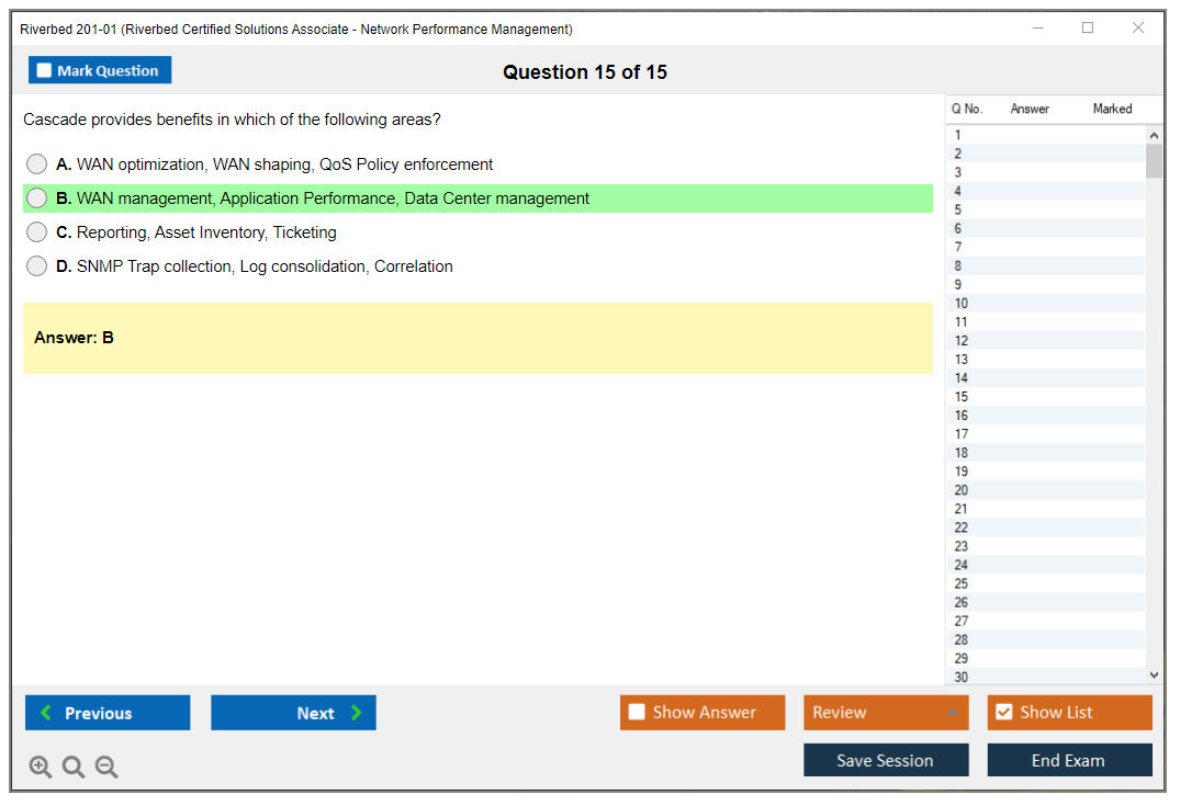 The Riverbed 201-01 (Riverbed Certified Solutions Associate - Network Performance Management) Exam is designed to validate the foundational knowledge and skills required to understand and manage network performance using Riverbed solutions.
