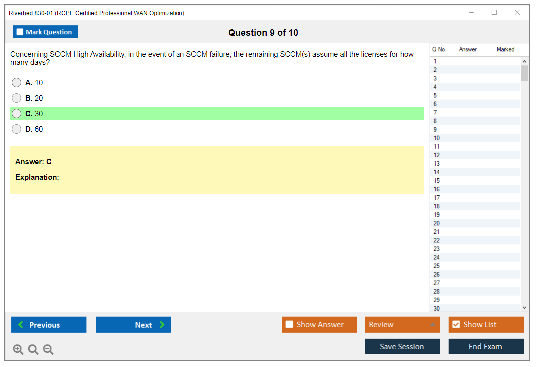 The question format of the Riverbed 830-01 Exam includes multiple-choice questions, scenario-based questions, and possibly simulations.