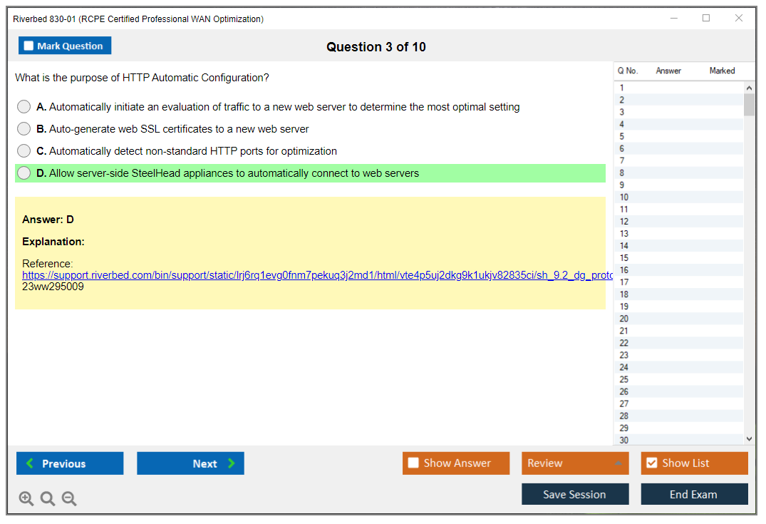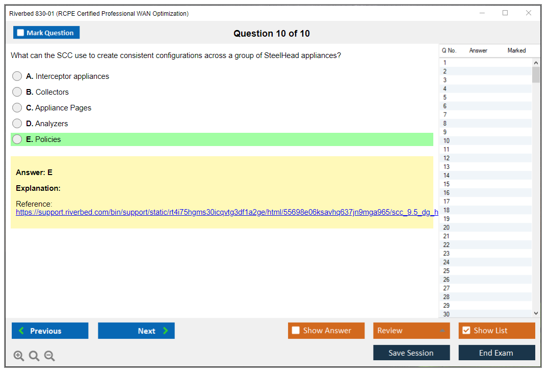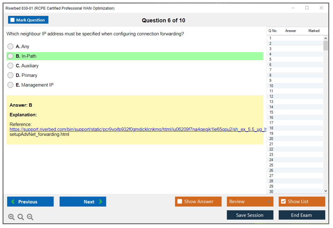 Sample questions for the Riverbed 830-01 Exam can be found on the official Riverbed certification page or through authorized training providers.