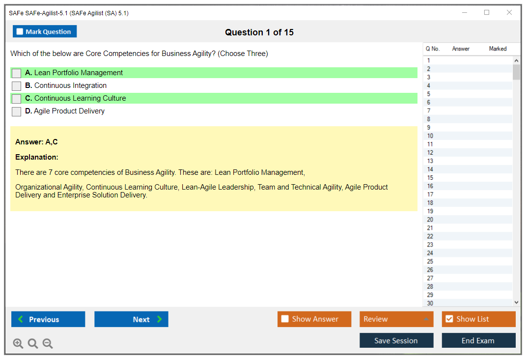 The SAFe Agilist (SA) 5.1 certification exam is designed to validate an individual's knowledge and ability to apply the Scaled Agile Framework (SAFe) in a business context. The exam covers various aspects of lean-agile principles, practices, and roles necessary for leading a Lean-Agile enterprise transformation by leveraging SAFe.