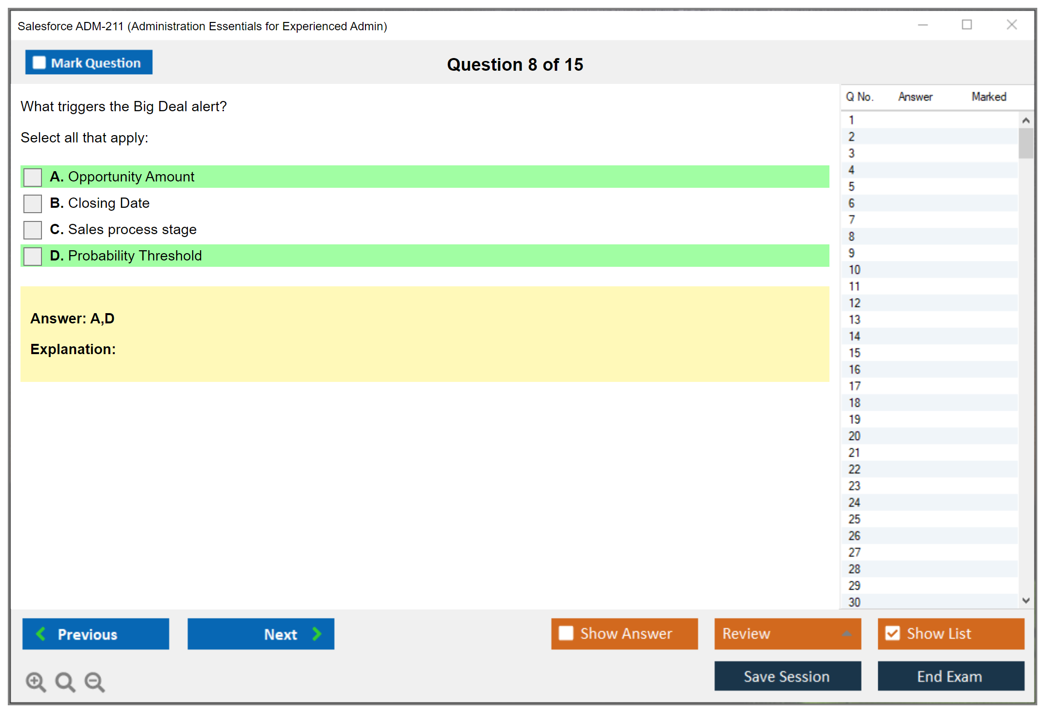 You can take the Salesforce ADM-211 Exam online through a proctored environment or at a testing center.