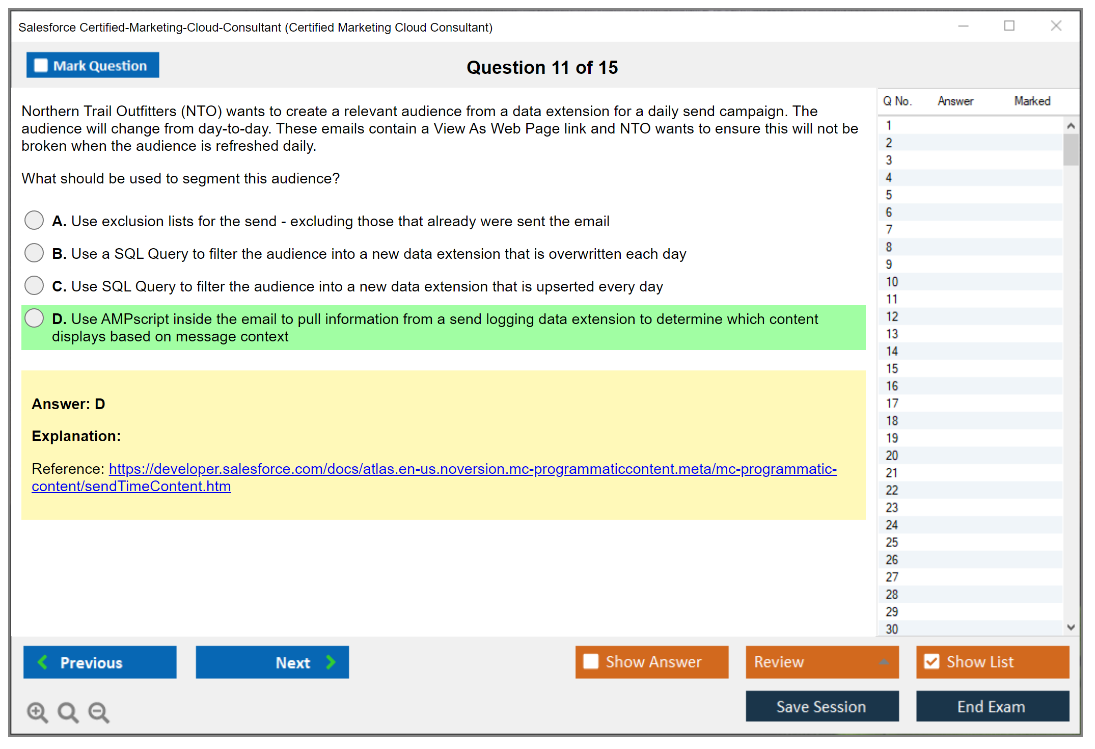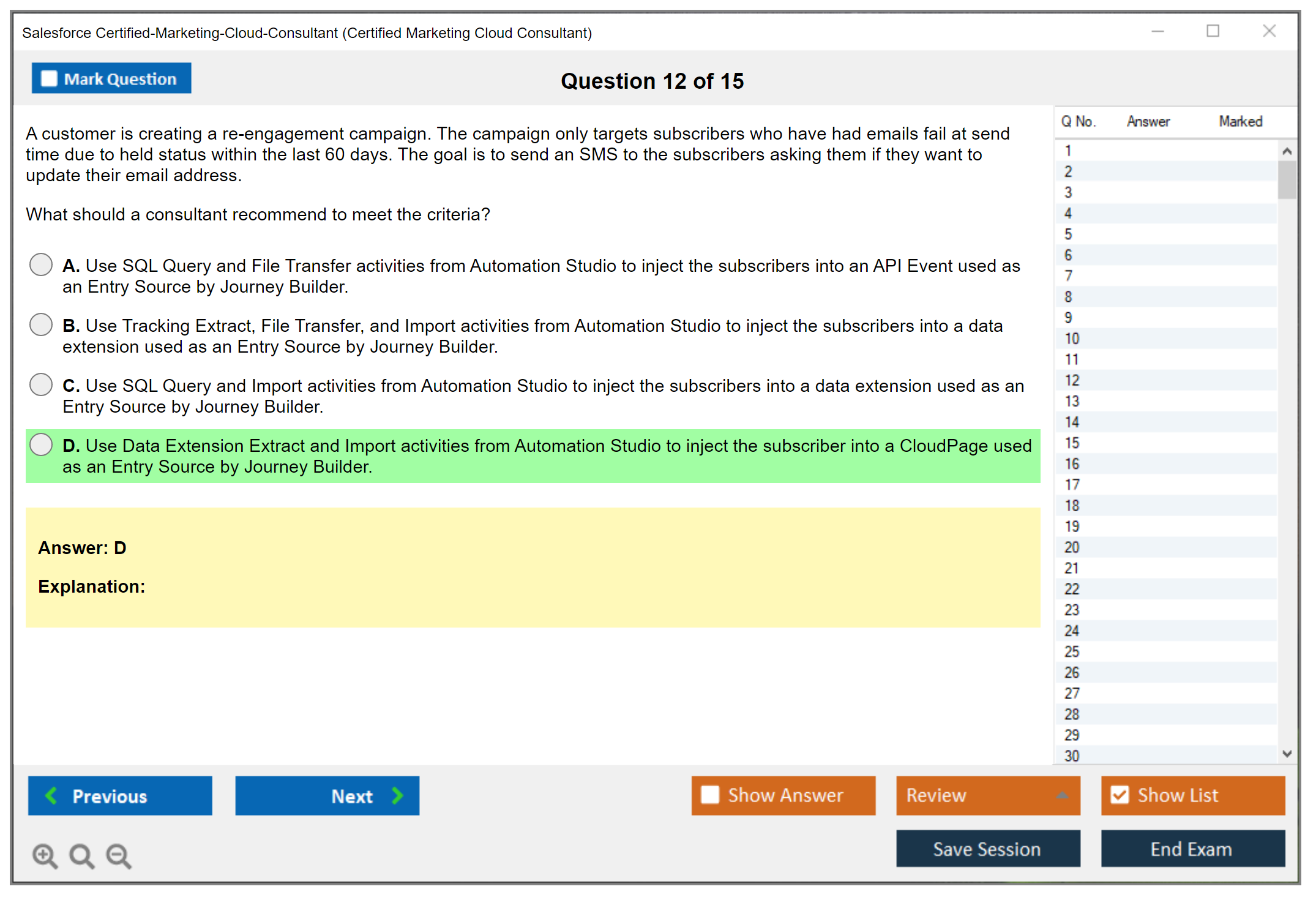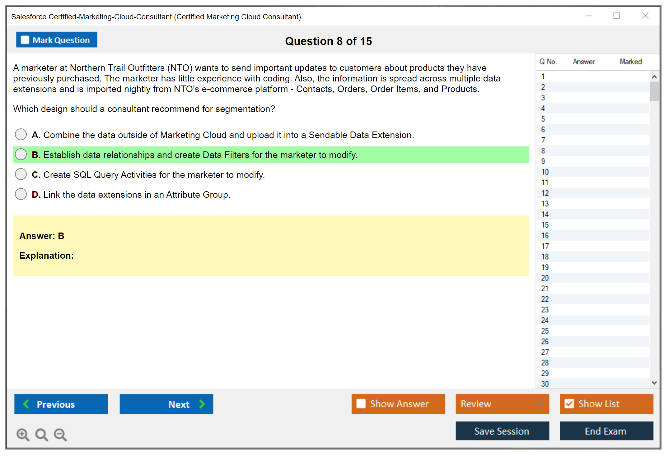 What are the Sample Questions of Salesforce Certified-Marketing-Cloud-Consultant Exam?