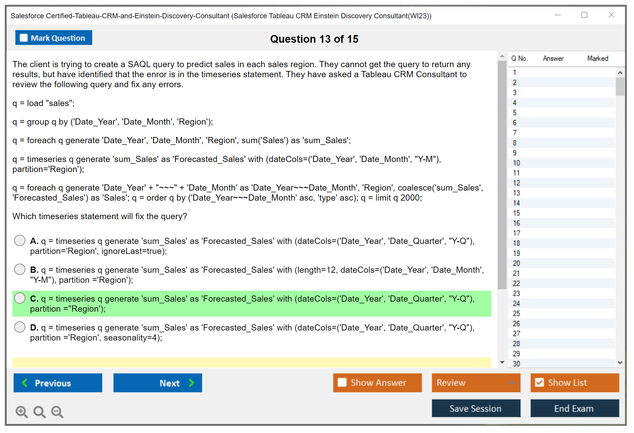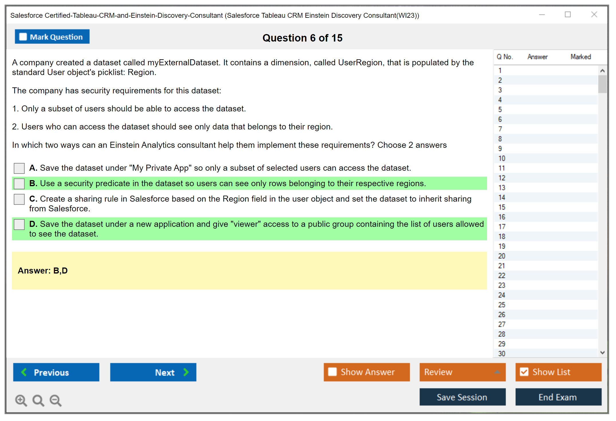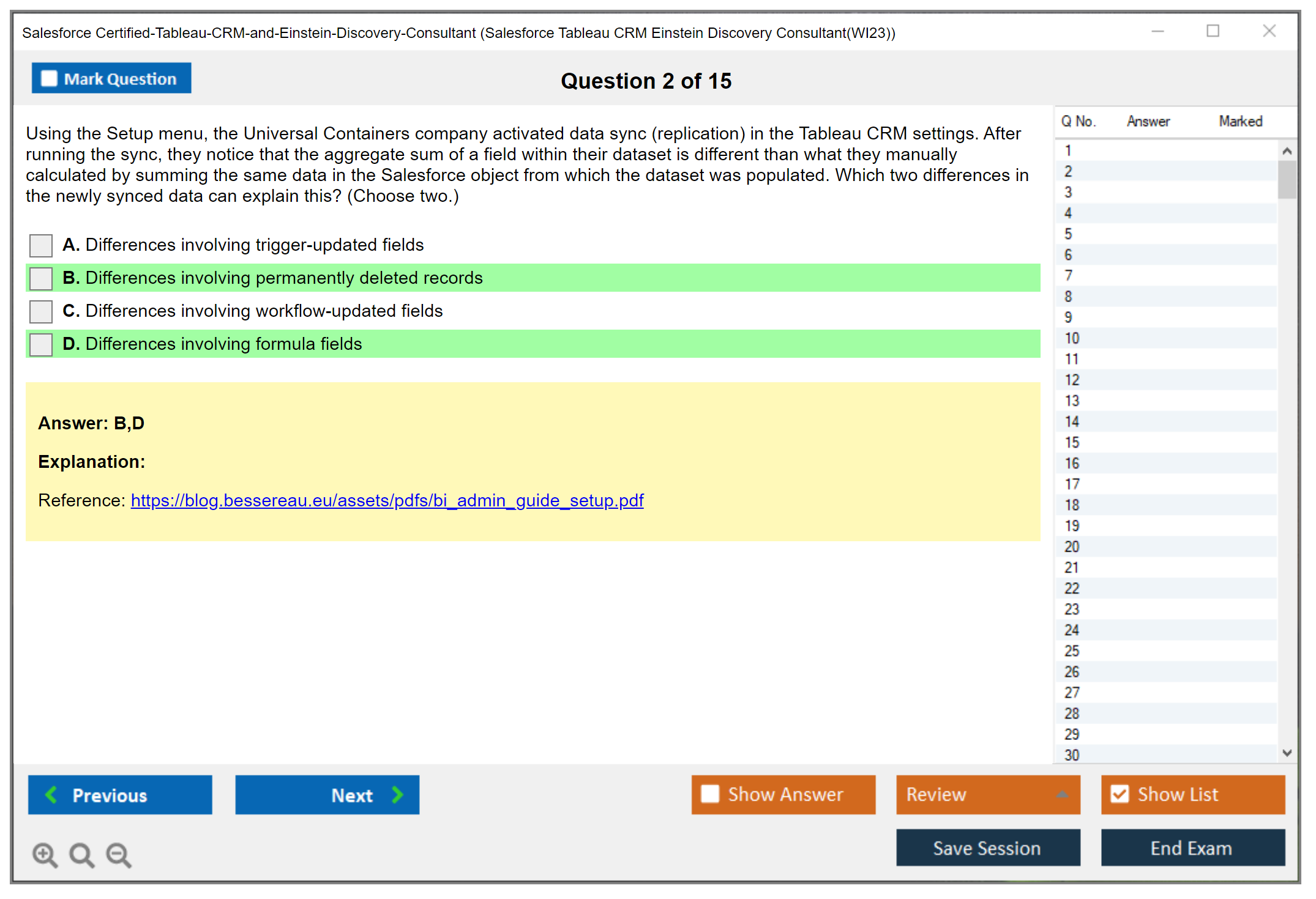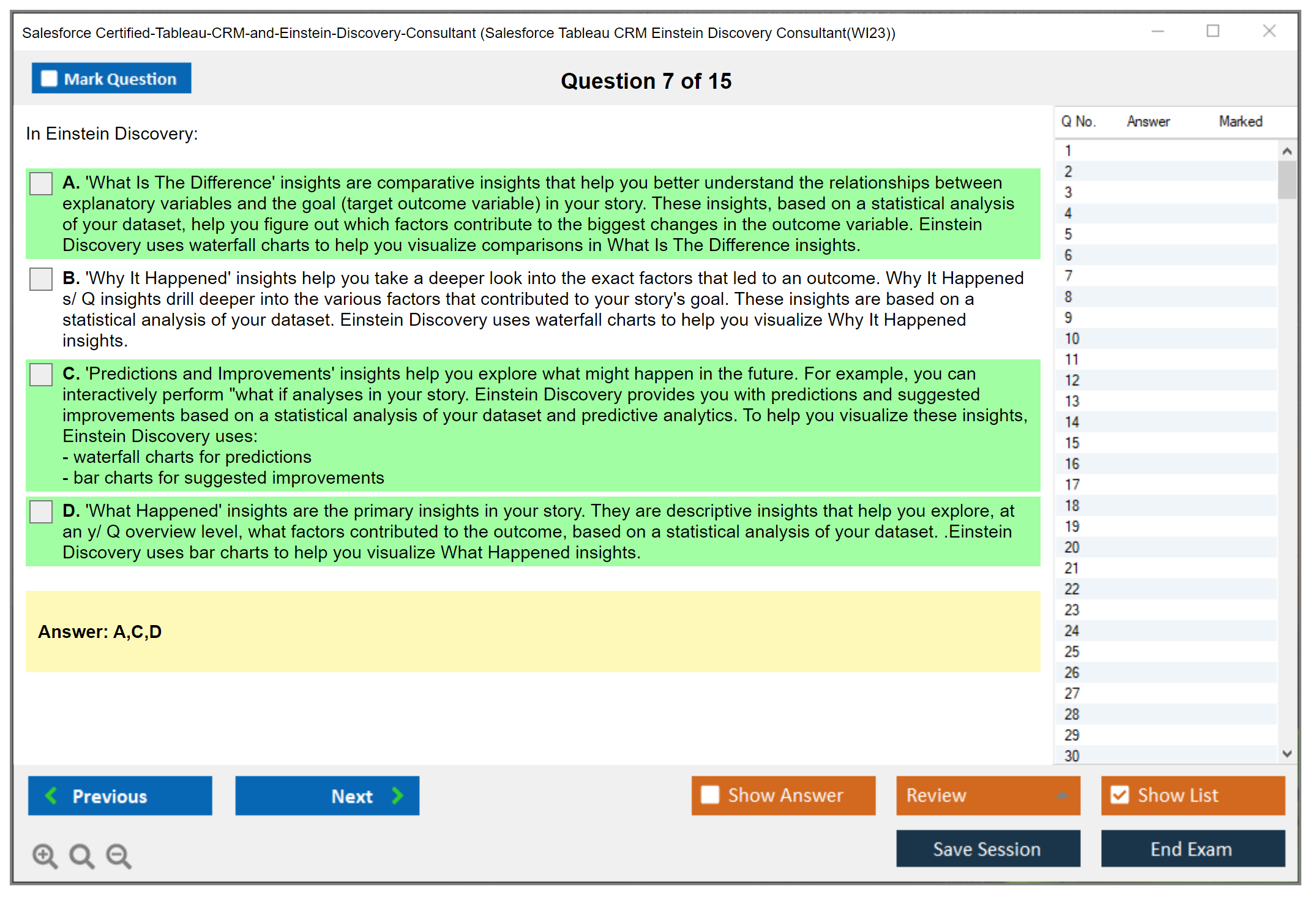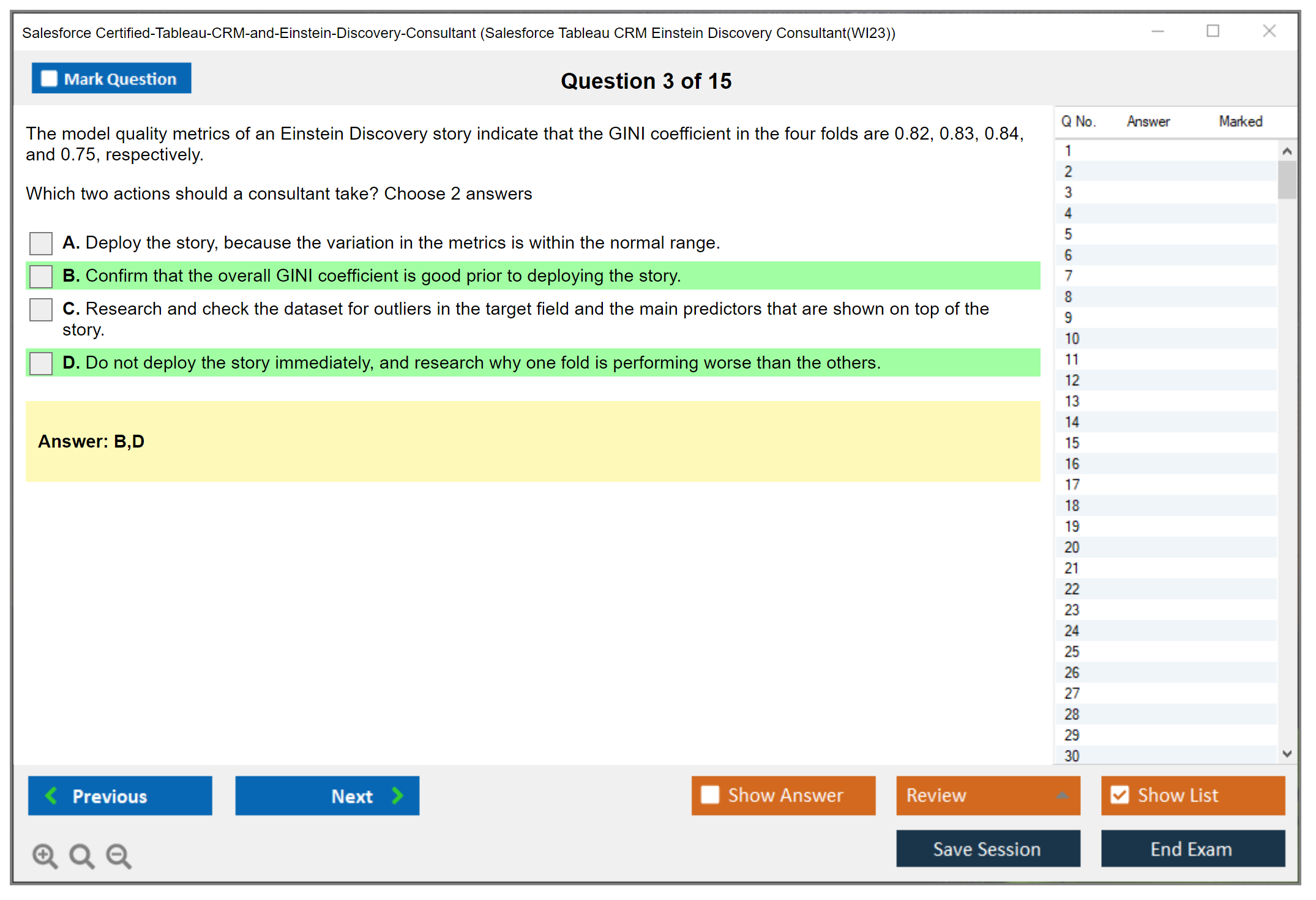 What are the Sample Questions of Salesforce Certified-Tableau-CRM-and-Einstein-Discovery-Consultant Exam?