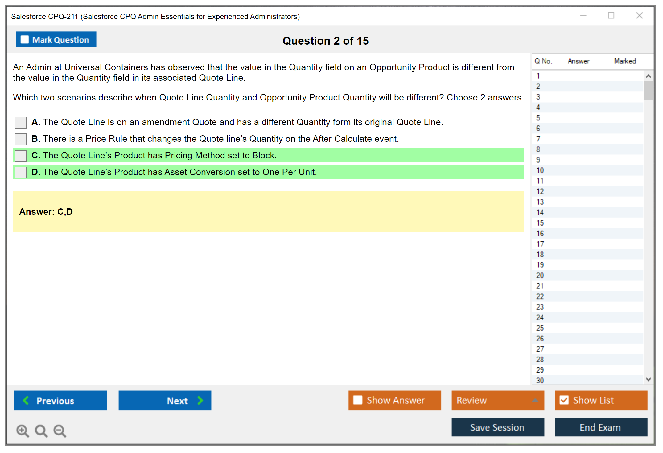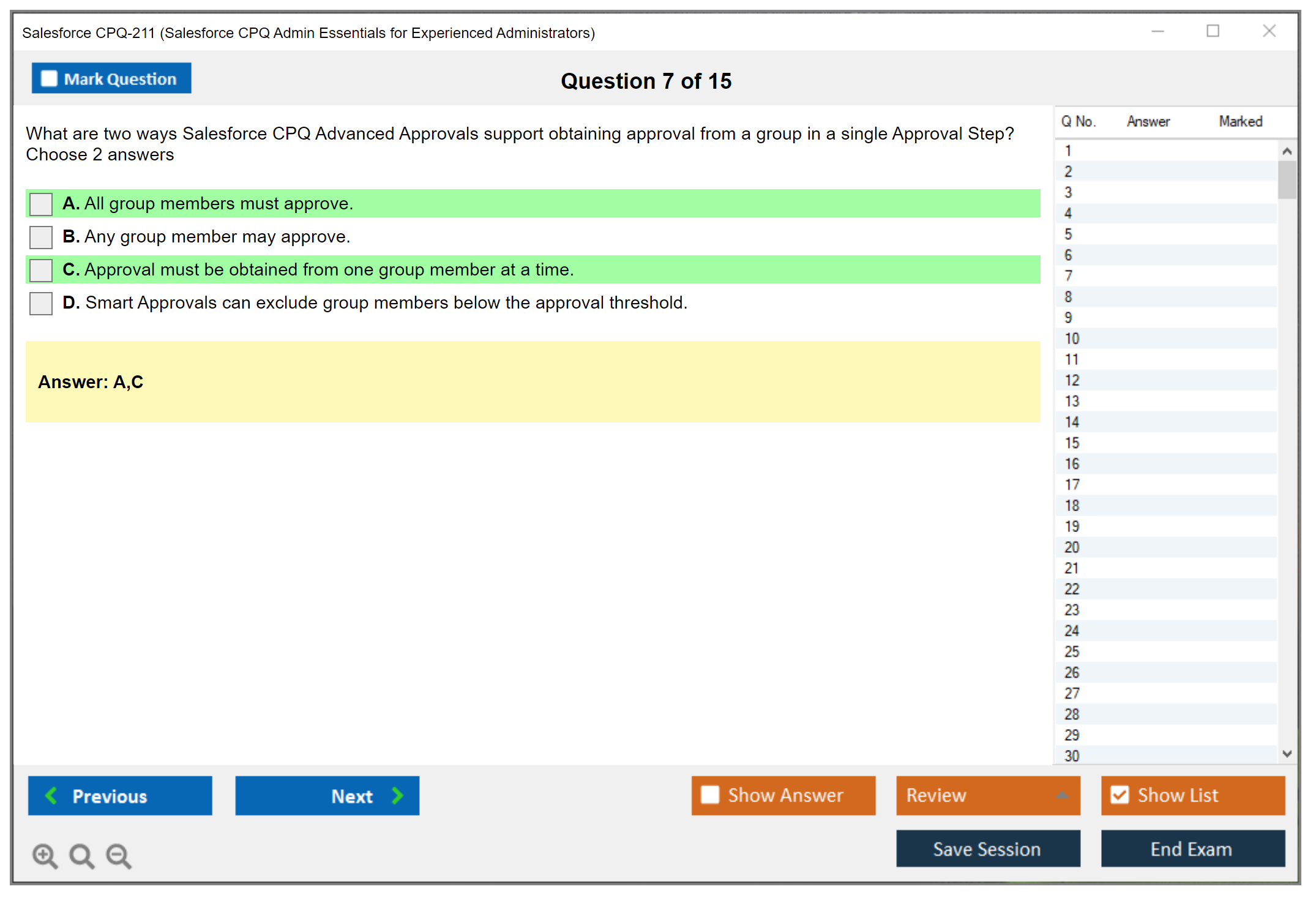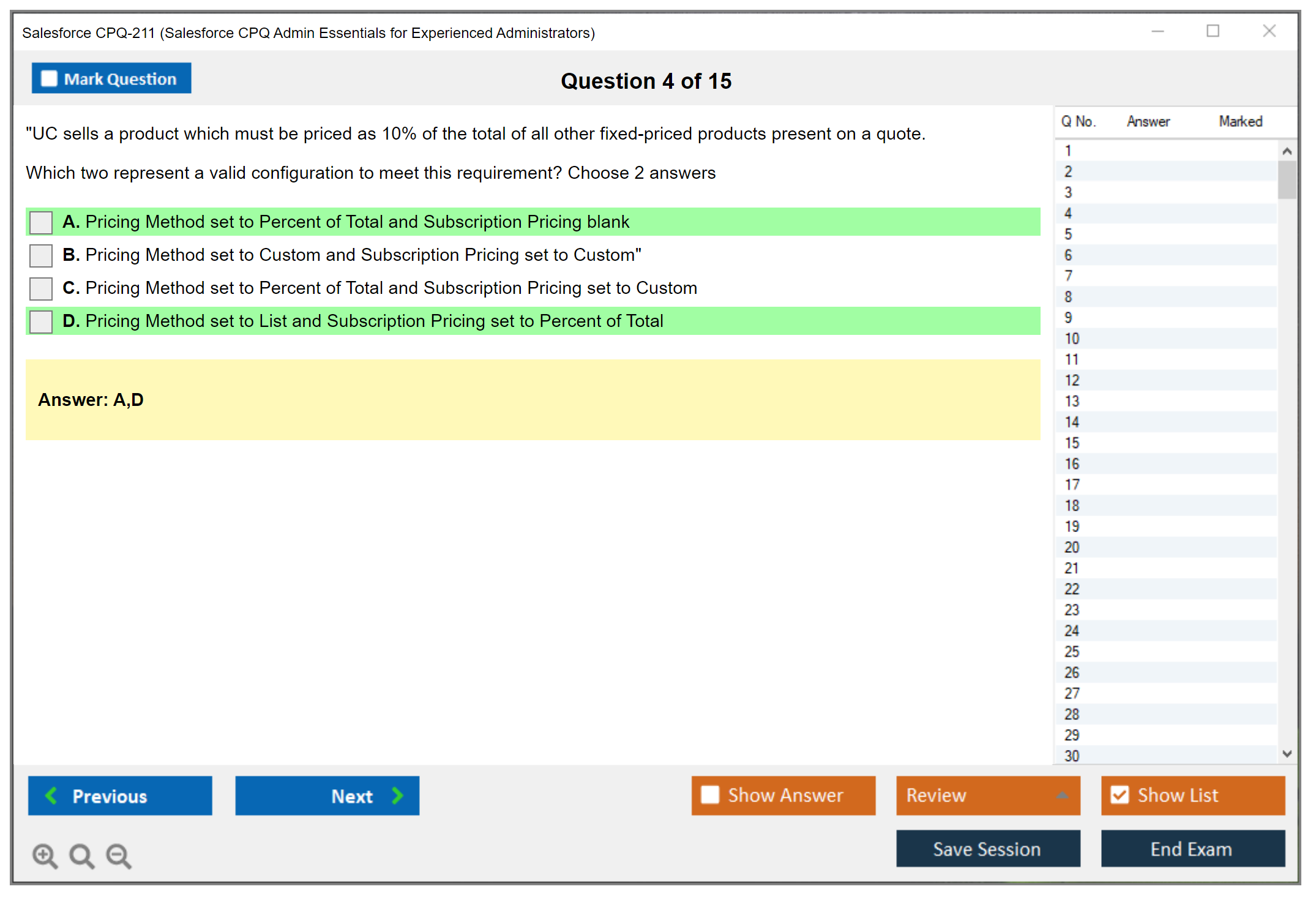 The question format of the Salesforce CPQ-211 Exam includes multiple-choice and multiple-select questions.