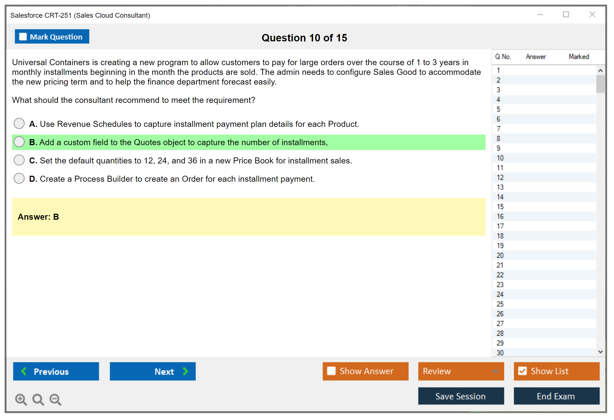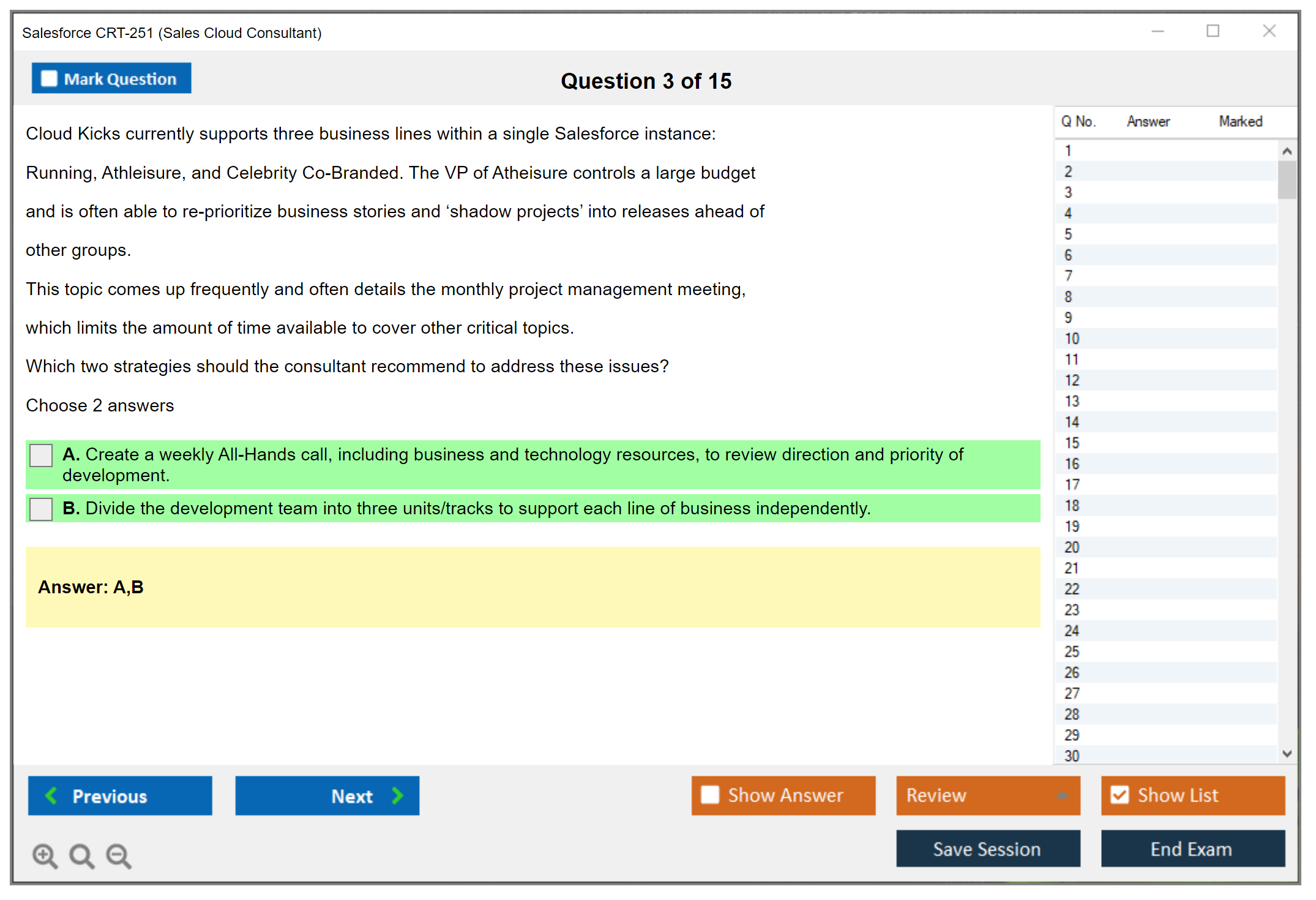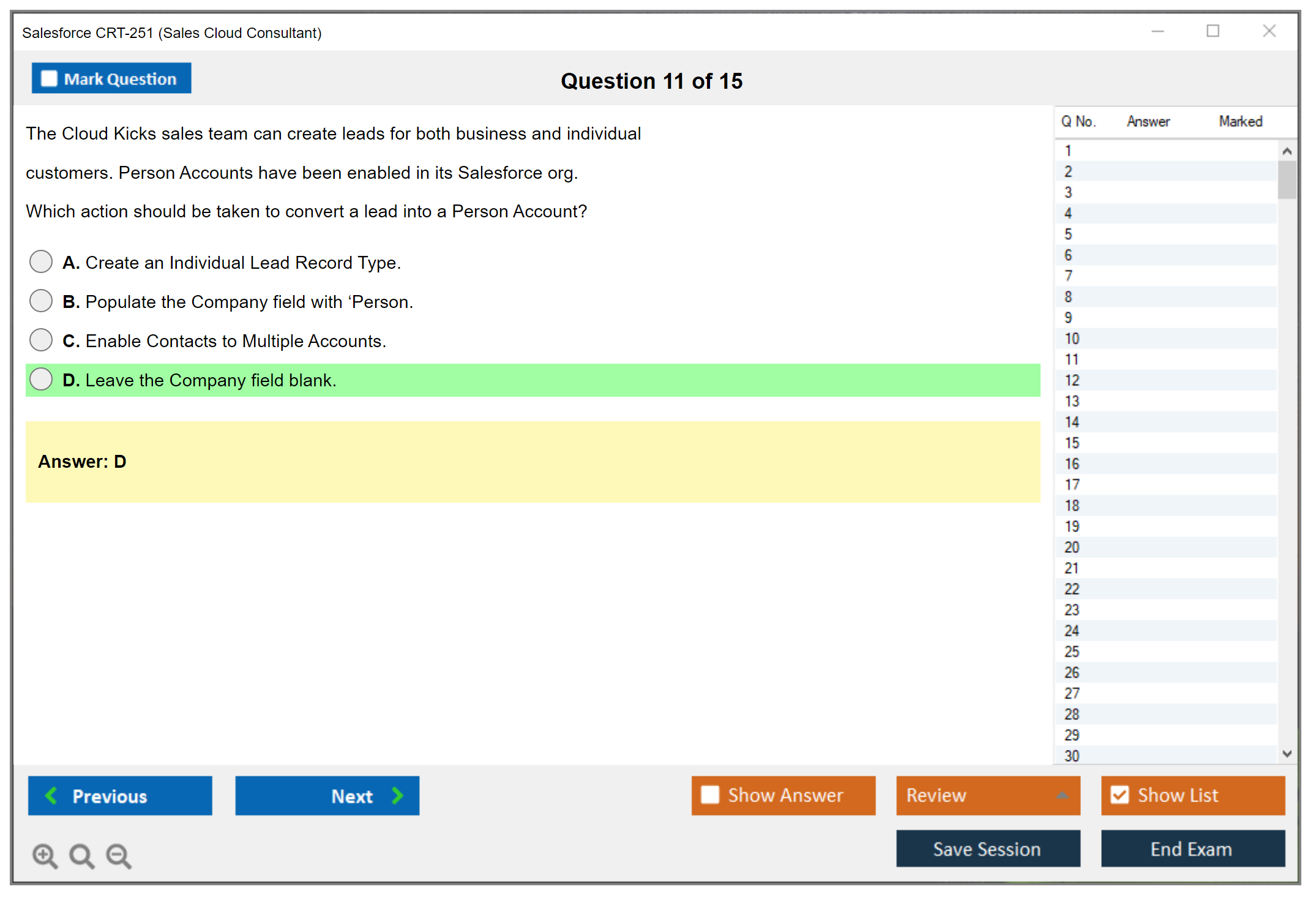 The Salesforce CRT-251 exam, also known as the Salesforce Certified Sales Cloud Consultant exam, is intended for individuals who have experience implementing Sales Cloud solutions in a customer-facing role. The exam assesses the ability to design and implement scalable and maintainable Sales Cloud solutions that meet customer business requirements.
