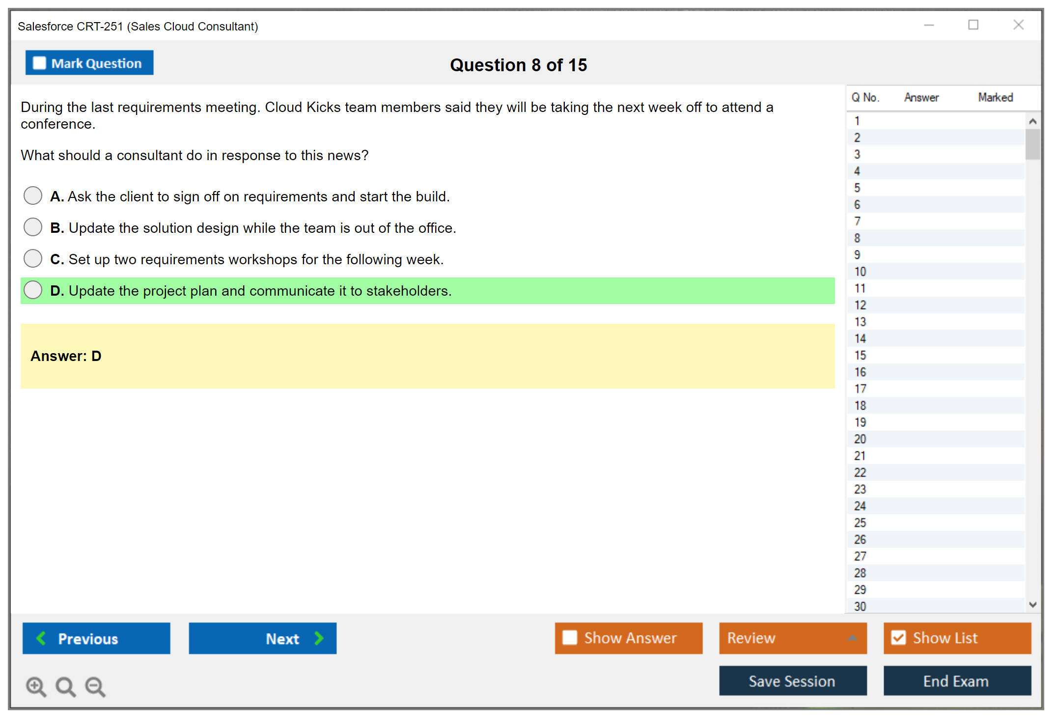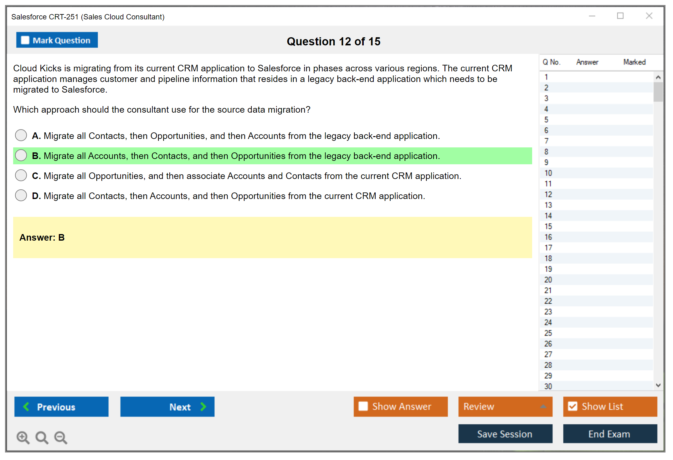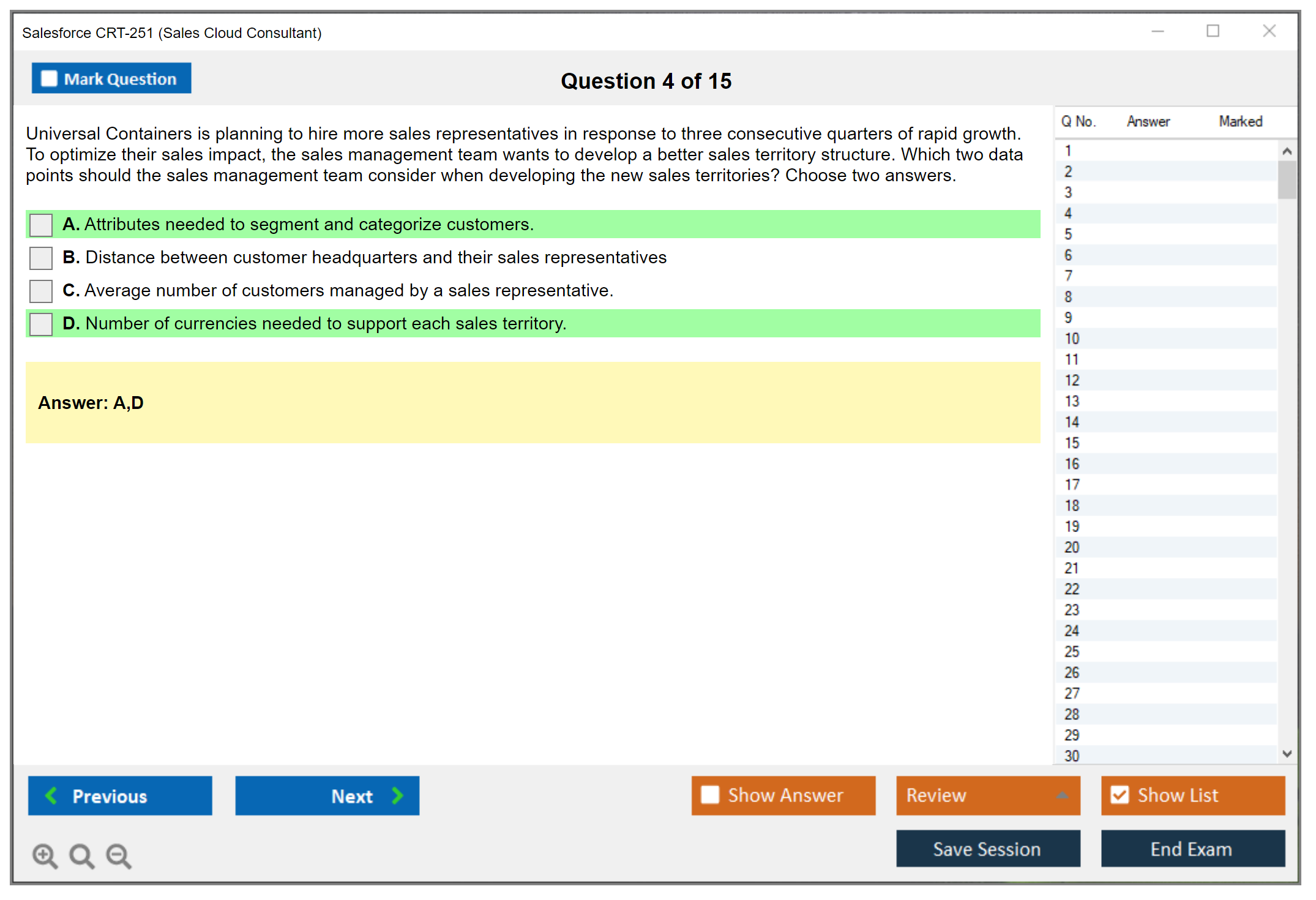 The Salesforce CRT-251 exam, also known as the Salesforce Certified Sales Cloud Consultant exam, is intended for individuals who have experience implementing Sales Cloud solutions in a customer-facing role. The exam assesses the ability to design and implement scalable and maintainable Sales Cloud solutions that meet customer business requirements.