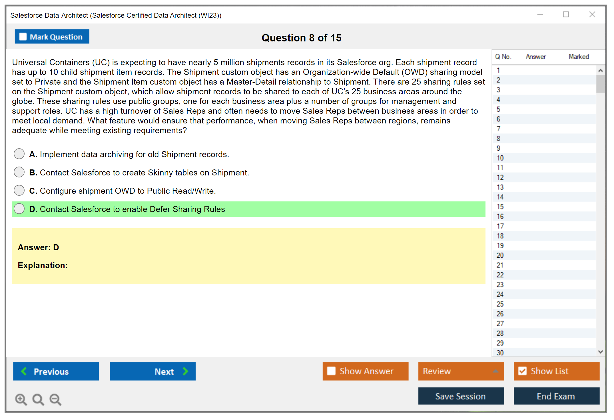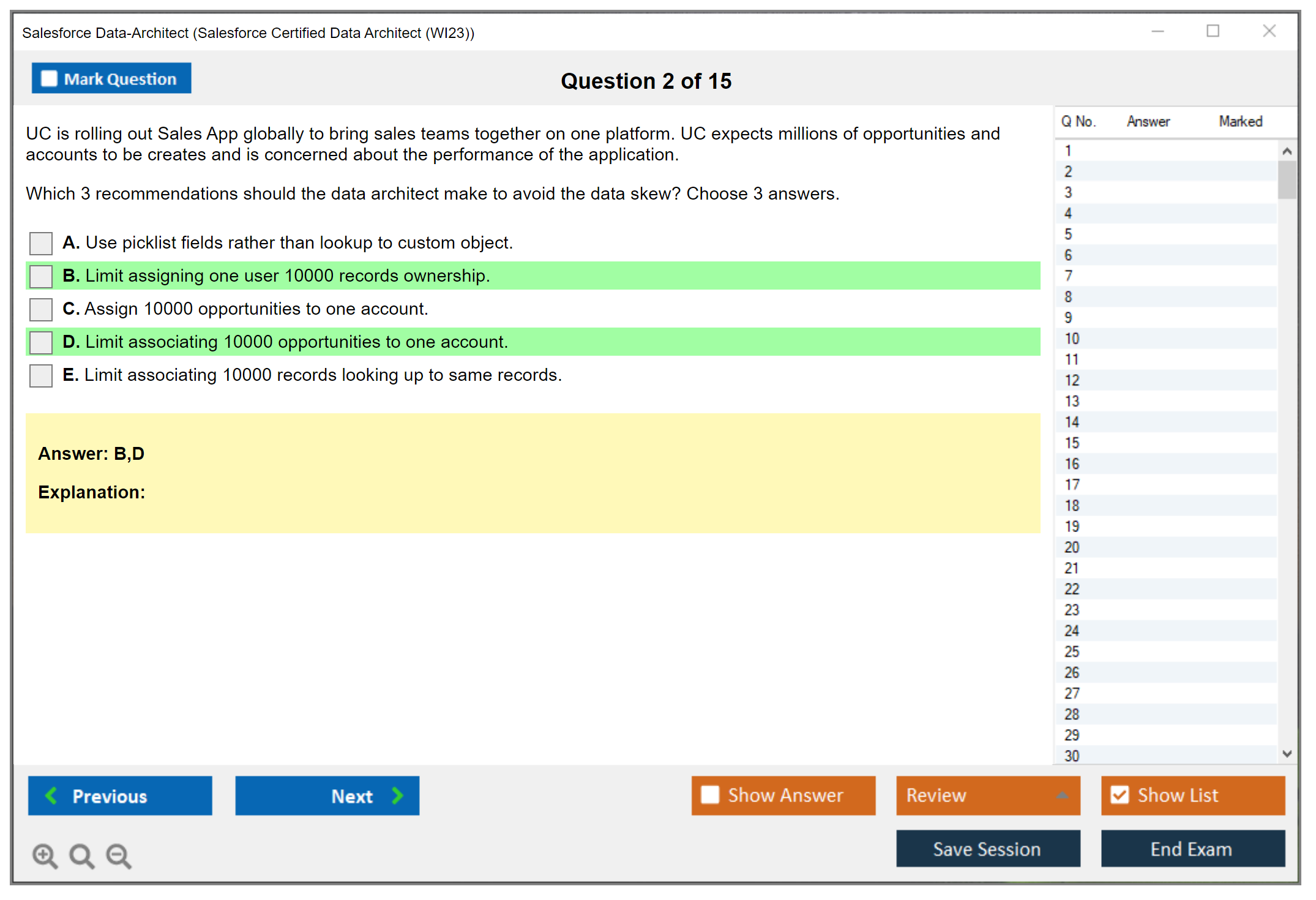 What are the Sample Questions of Salesforce Data-Architect Exam?