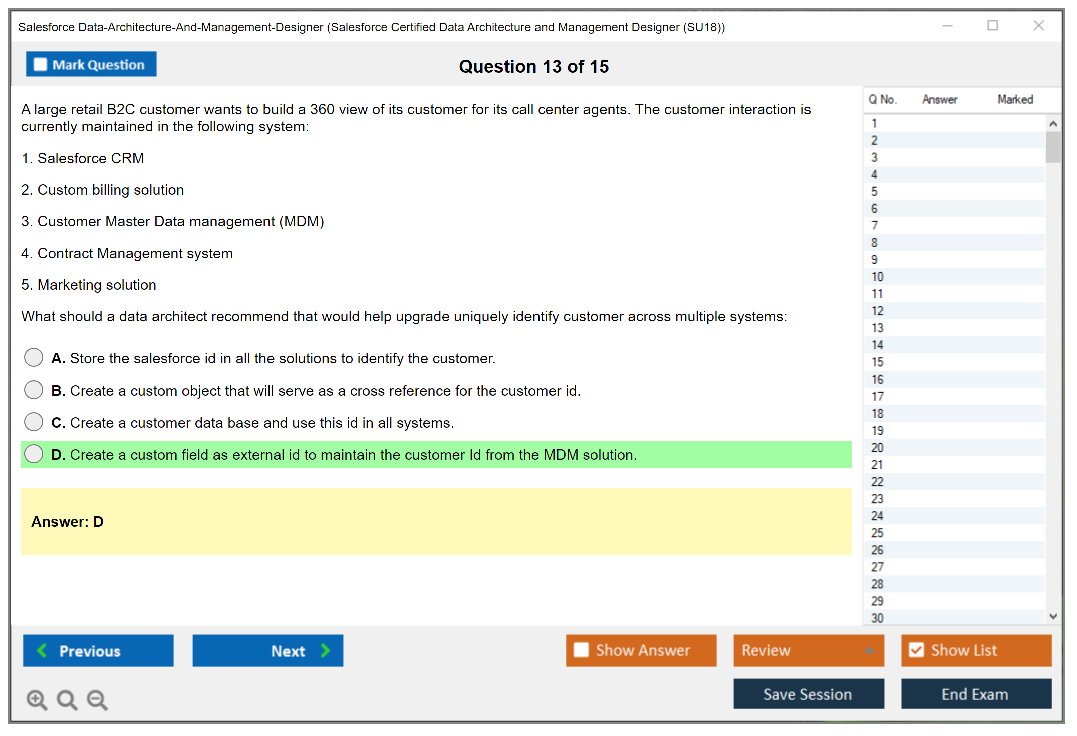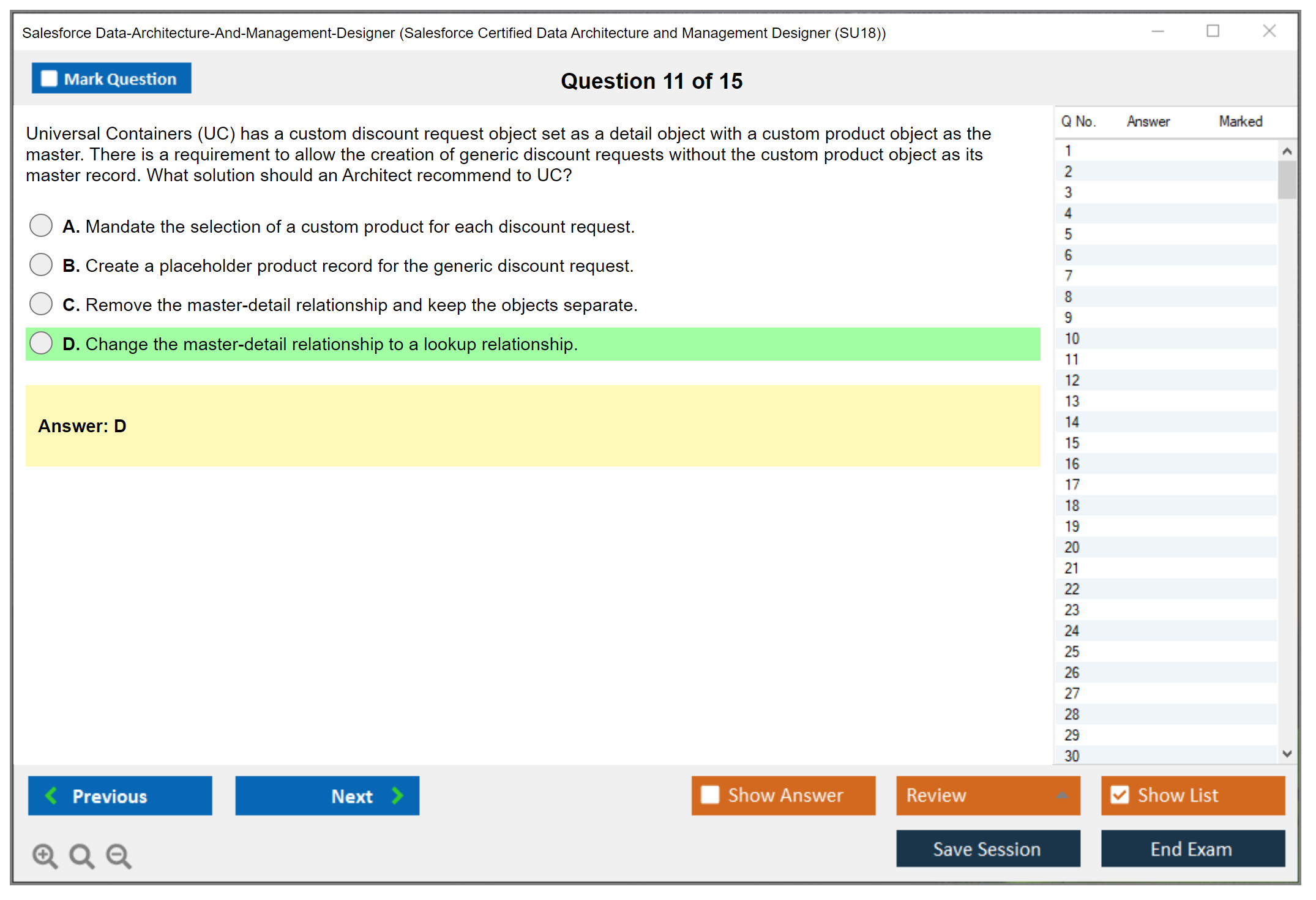 Note: Salesforce Data-Architecture-And-Management-Designer (Salesforce Certified Data Architecture and Management Designer (SU18)) will not receive any new updates.