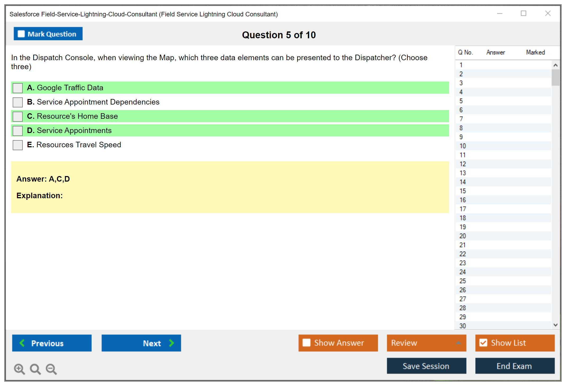 Sample questions for the Salesforce Field Service Lightning Cloud Consultant exam can be found in the exam guide provided by Salesforce and through various online resources and practice exams.