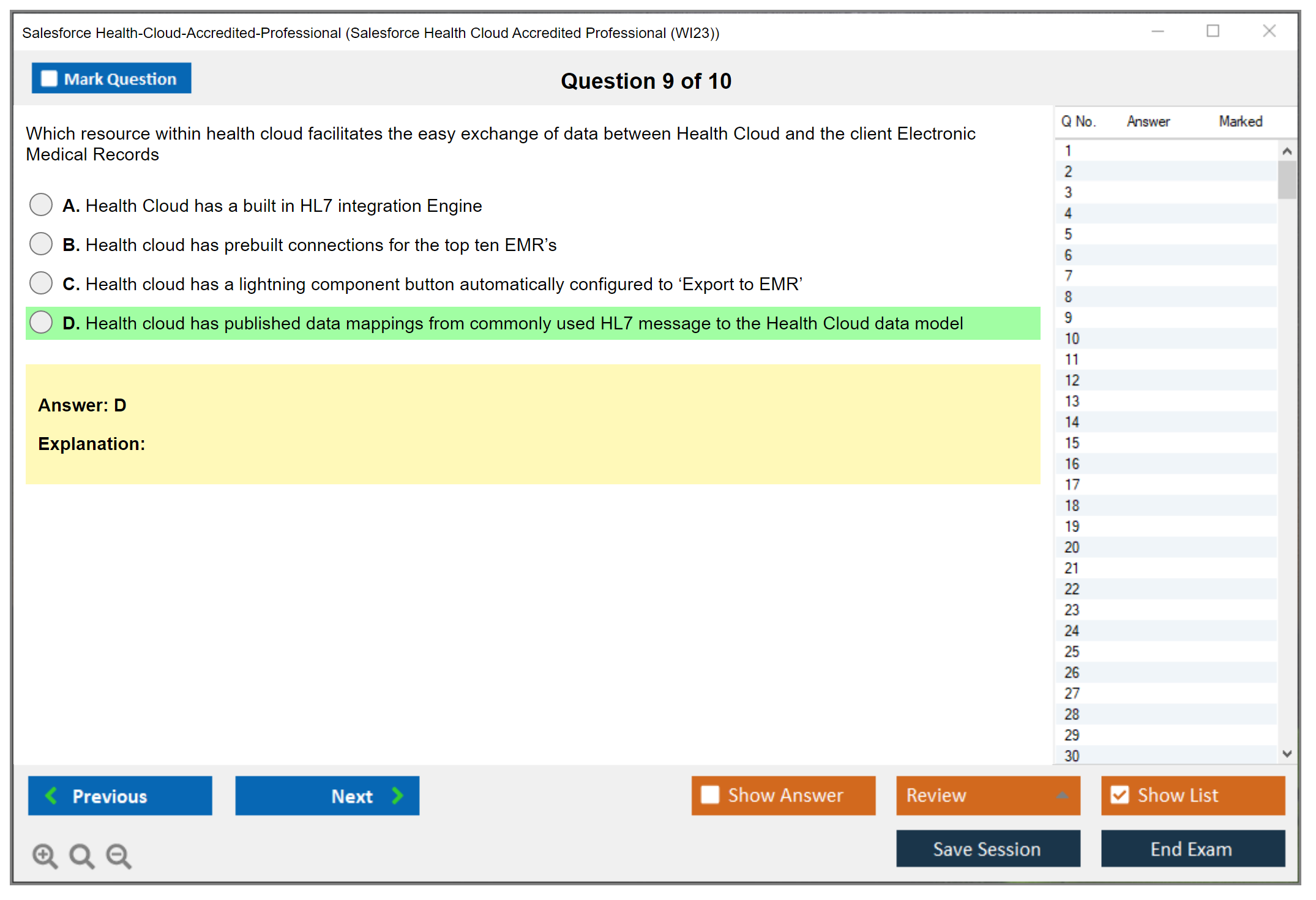 The Salesforce Health-Cloud-Accredited-Professional Exam is designed to test the expertise of professionals in implementing and managing Salesforce Health Cloud. It covers various aspects such as data modeling, security, compliance, and integration with other healthcare systems.