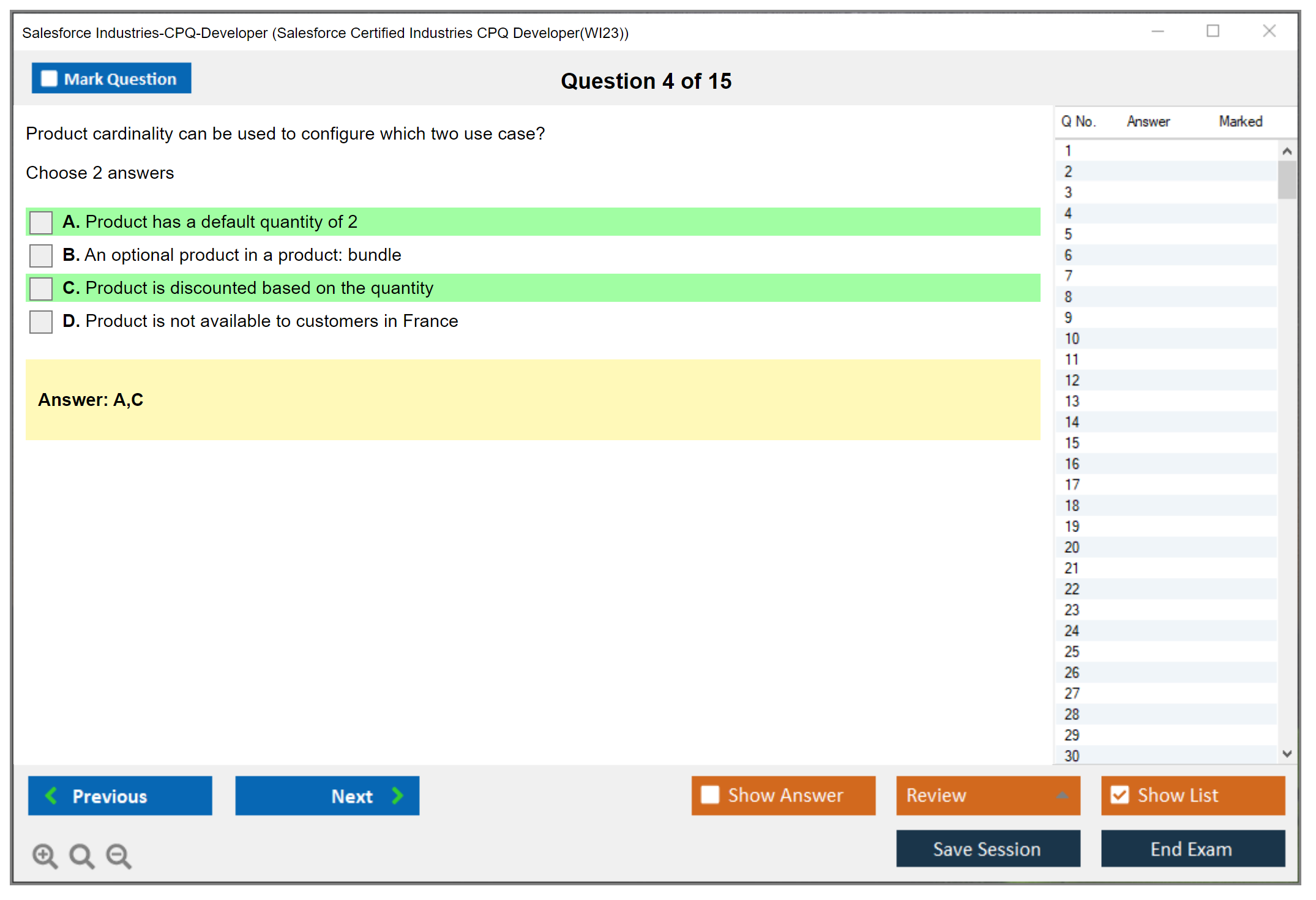 The question format of the Salesforce Industries-CPQ-Developer Exam includes multiple-choice and multiple-select questions.