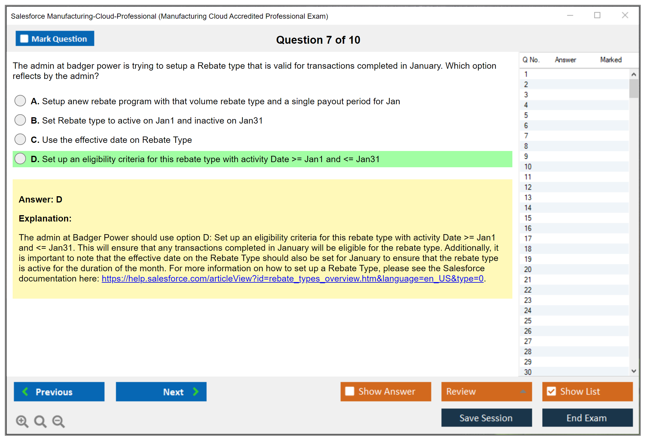 Sample questions for the Salesforce Manufacturing-Cloud-Professional Exam can be found on the official Salesforce certification website or through authorized training providers.