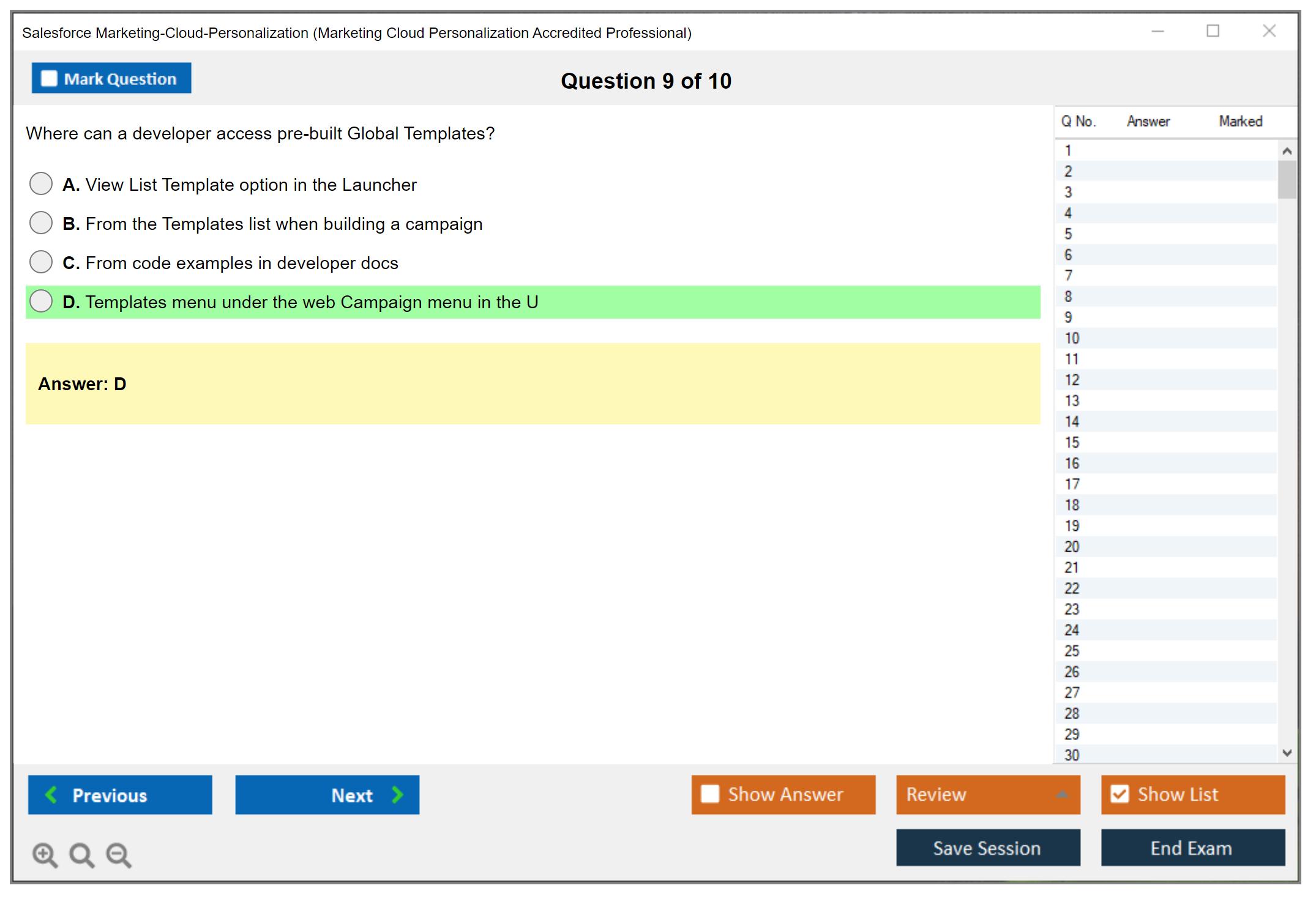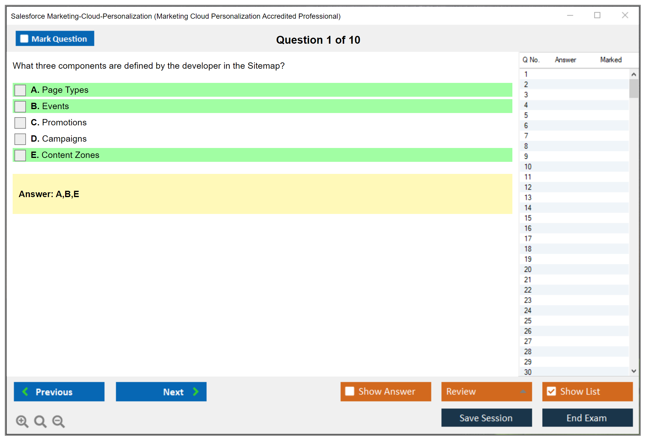 Sample questions for the Salesforce Marketing-Cloud-Personalization Exam can be found on the official Salesforce certification website or through various online study resources and practice exams.