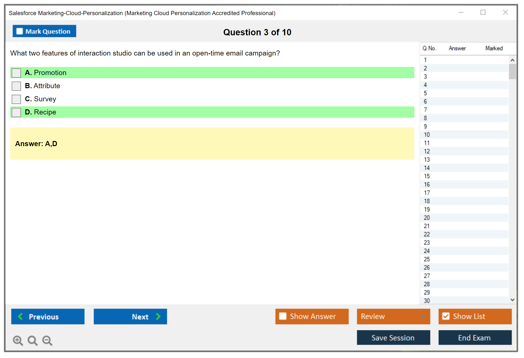 The question format of the Salesforce Marketing-Cloud-Personalization Exam is multiple-choice and multiple-select questions.